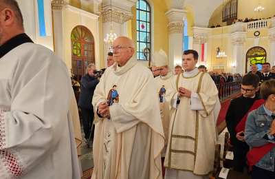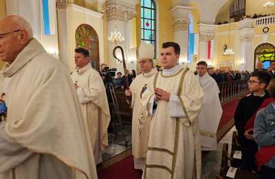 W homilii biskup kaliski wskazywał, że kościół jest miejscem wołania do Boga. - Drodzy parafianie macie doświadczenie takiego wołania? Wołacie do Boga? To miejsce jest po to, aby nie bać się wołać. Wiemy, że Jezus jest Bogiem dobrym i możemy do Niego wołać w naszych biedach, strapieniach, bezradności. Jezus ma nie tylko wrażliwe serce, ale także ma moc przemienić ludzką biedę - powiedział celebrans. Podkreślał, że ten kościół jest ważny, ponieważ jest miejscem słuchania. - Tu możemy usłyszeć słowo Jezusa. Słowo, które jest odpowiedzią na naszą biedę, na nasze strapienie, na nasze wołanie. Ten kościół jest ważny, bo możemy tutaj usłyszeć słowo pociechy, czasami słowo umocnienia, ale także czasami słowo napomnienia – stwierdził kaznodzieja. Zaznaczył, że ta świątynia jest miejscem zatrzymania i uważności. - Często mamy wiele zajęć, różnych obowiązków i dużo biegania. Ta świątynia jest miejscem, żeby przyjść, żeby zatrzymać się, żeby spojrzeć na swoje życie i zobaczyć co się w nim dzieje. To miejsce jest po to, żebyśmy razem modlili się, ale to miejsce jest także po to, żebyśmy tu mogli przyjść, gdy nikogo nie ma, mogli usiąść i na spokojnie zastanowić się, co dzieje się ze mną i wokół mnie – mówił pasterz Kościoła kaliskiego.