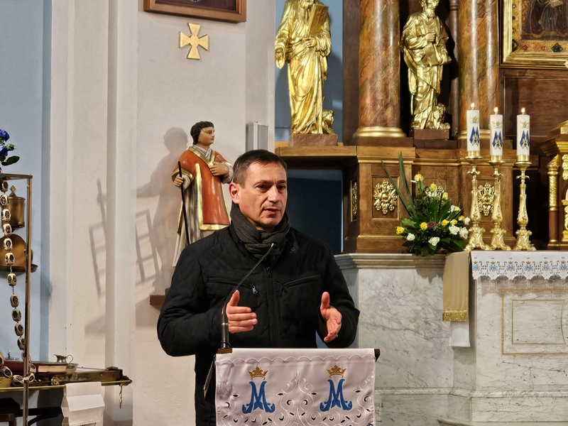 Na początku członkowie Akcji Katolickiej mieli okazję wysłuchać konferencji ks. prałata dra Sławomira Kęszki na temat związków kard. Stefana Wyszyńskiego z terenami obecnej diecezji kaliskiej. W homilii ks. biskup prosił członków Akcji Katolickiej, aby codziennie sięgali po Pismo Święte, czytali je, rozważali i konfrontowali ze swoim życiem. Przypomniał, że przeżywamy Rok Jubileuszowy, który jest czasem nabierania ducha i otwierania się na Bożą łaskę. Dziękował Akcji Katolickiej za inicjatywę organizowania pielgrzymek do miejsc jubileuszowych w diecezji kaliskiej. Prosił też o to, aby ofiarowywać odpusty za zmarłych z rodziny, ale także tych, którzy potrzebują tej łaski. Akcentował, że czas jubileuszu to także czas przebaczenia i pojednania. - Chciałbym zaprosić, abyśmy klimat przebaczenia i pojednania wprowadzali w naszych rodzinach i parafiach, a także wnosili w życie społeczne. Proszę budujemy mosty, a nie mury – podkreślał kaznodzieja. Zaprosił do lektury adhortacji apostolskiej papieża Leona XIV o miłości do ubogich. - Papieżowi zależy na kształtowaniu pewnych postaw, żebyśmy bardziej żyli Ewangelią, żebyśmy żyli duchem Pana Jezusa, żebyśmy nie byli obojętni. Ważne jest, żebyśmy nie tylko mieli wrażliwe serce, ale gotowość do pomocy. Akcja Katolicka w naszej diecezji pięknie wspiera potrzebujących i bardzo za to dziękuję. Zapraszam, abyśmy dawali młodym dobry przykład i zachęcali ich do niesienia pomocy osobom będącym w trudnej sytuacji – przekonywał pasterz Kościoła kaliskiego.