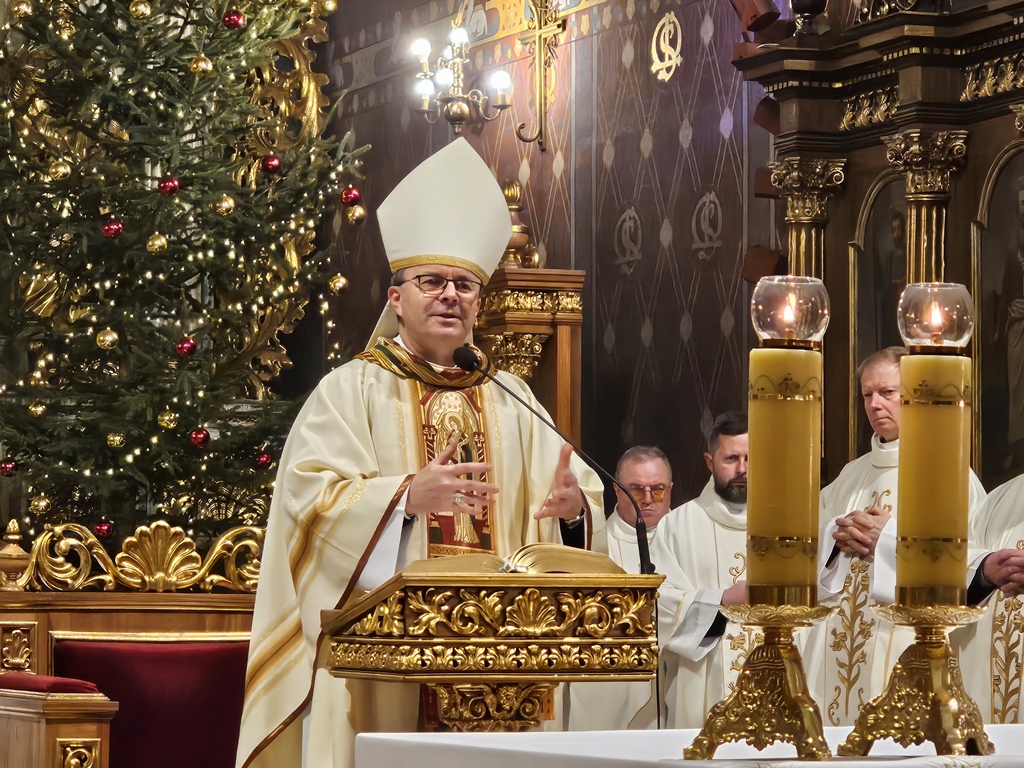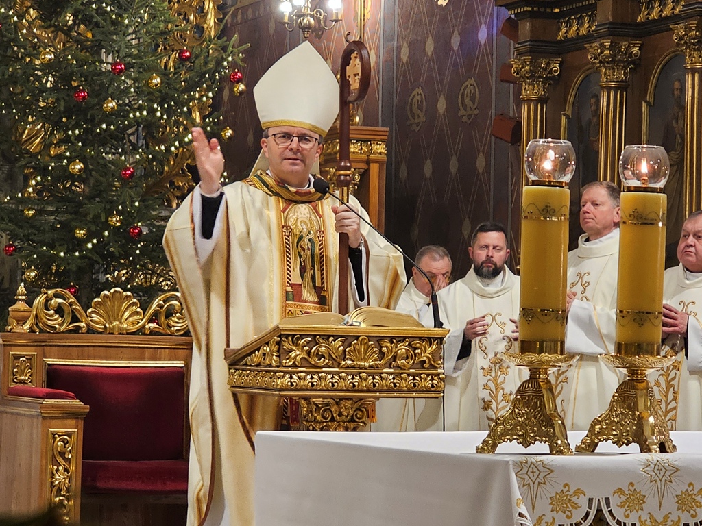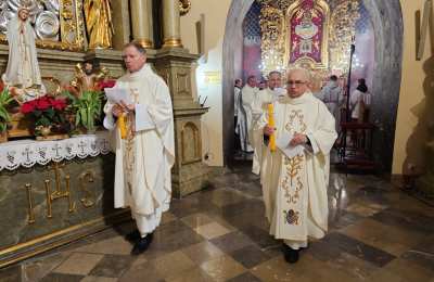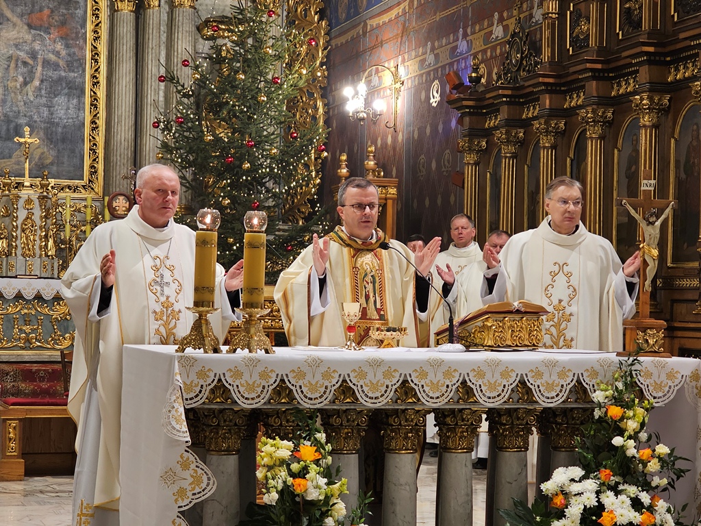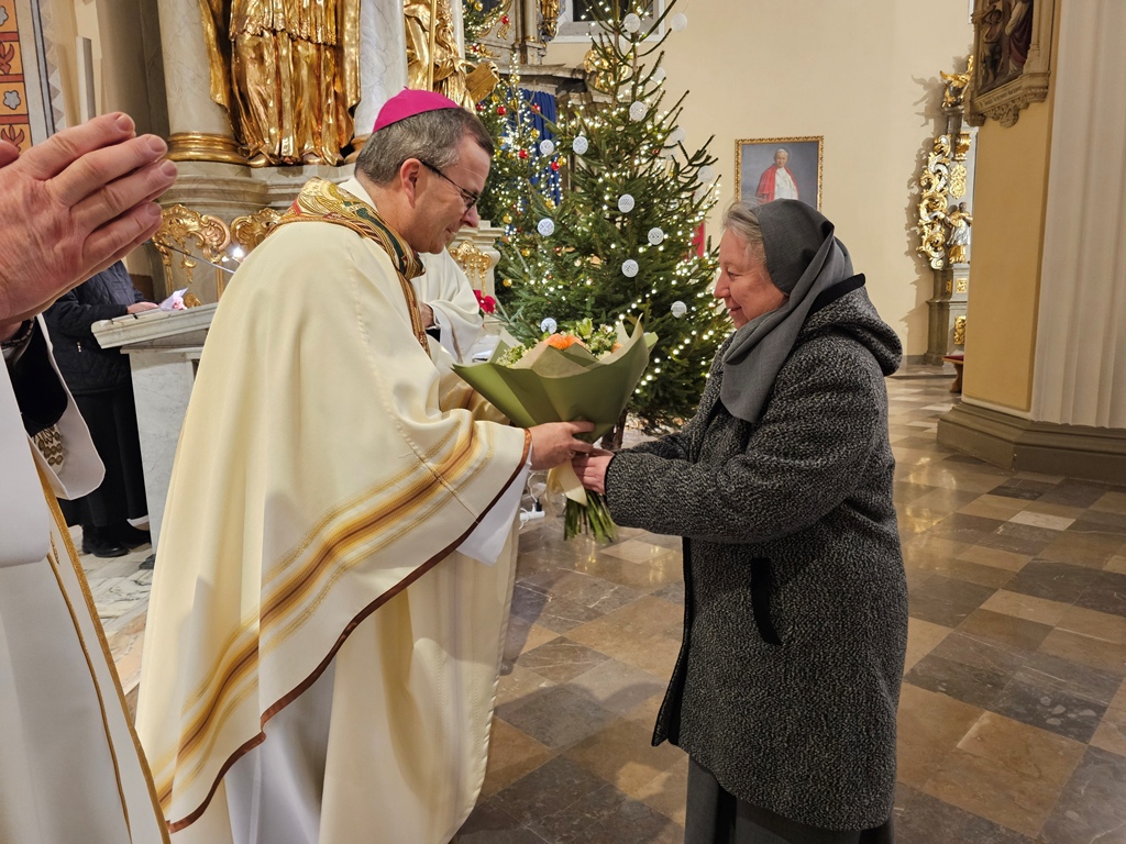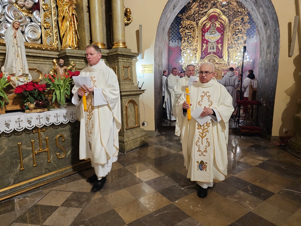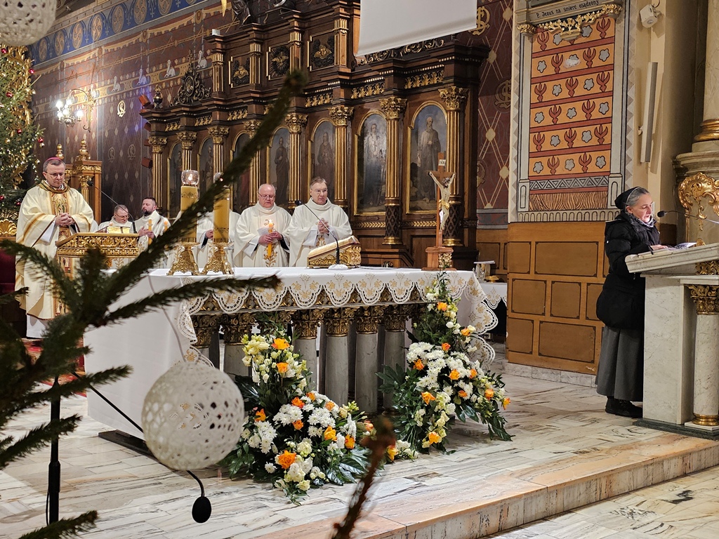 W homilii bp Damian Bryl dziękował wspólnotom zakonnym za posługę w diecezji kaliskiej. – Bardzo dziękuję za to wszystko, co dobry Bóg przez was dokonuje w Kościele i w świecie, także w naszej diecezji. Dziękujemy dzisiaj za wasze życie, za wasze powołanie, za wasze prace w różnych miejscach. Widzimy i bardzo cenimy wasze zaangażowanie – powiedział celebrans. Wskazywał, że w ostatnim czasie Kościół w szczególny sposób zachęca do podejmowania drogi synodalnej. – „Chciałbym zaprosić was do zastanowienia się nad ważną kwestią dla Kościoła naszych czasów: synodalnością, zachęcając was do pozostania wiernymi drodze, którą wszyscy w tym kierunku pożądamy. Wasze życie, sam sposób, w jaki jesteście zorganizowani stawiają was w uprzywilejowanej sytuacji, pozwalającej na codzienne życie wartościami, takimi jak wzajemne słuchanie, uczestnictwo, dzielenie się opiniami i umiejętnościami, wspólne poszukiwanie dróg zgodnie z głosem Ducha – cytował fragmenty przemówienia Leona XIV w czasie Jubileuszu osób konsekrowanych. Podkreślał, że synodalność to odkrywanie wspólnej drogi, odkrywanie, że razem jesteśmy w Kościele. – Chciałbym, żeby dzisiaj wśród nas bardzo mocno wybrzmiało słowo razem. Idziemy do Boga, służymy Jezusowi razem. W świecie, który jest tak bardzo zindywidualizowany, gdzie tak mocno podkreśla się subiektywne prawa bardzo potrzeba świadectwa bycia razem, otwarcia, współpracy, współdziałania, wspólnej troski, umiejętności zostawiania siebie, aby siebie dać, aby być coraz bardziej dla – zaznaczył kaznodzieja. Przekonywał, że duchowość synodalna wypływa z działania Ducha Świętego i wymaga słuchania Słowa Bożego, kontemplacji, ciszy, nawrócenia. – „Duch Święty jest niezawodnym przewodnikiem, a naszym pierwszym zadaniem jest nauczenie się rozeznawania Jego głosu, ponieważ przemawia On we wszystkich i we wszystkim. Duchowość synodalna wymaga także ascezy, pokory, cierpliwości i gotowości do przebaczania i otrzymania przebaczenia” – cytował celebrans.
