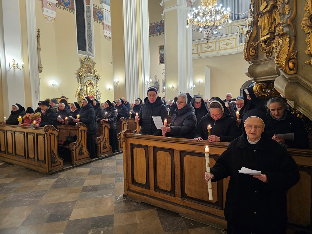 Po kazaniu osoby konsekrowane odnowiły śluby zakonne. Z biskupem kaliskim Damianem Brylem Mszę św. koncelebrowali: biskup pomocniczy Łukasz Buzun (paulin), delegat biskupa kaliskiego ds. życia konsekrowanego ks. kan. Michał Kieling, proboszcz parafii katedralnej ks. prałat Adam Modliński i kapłani zakonni.