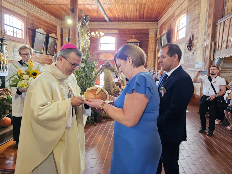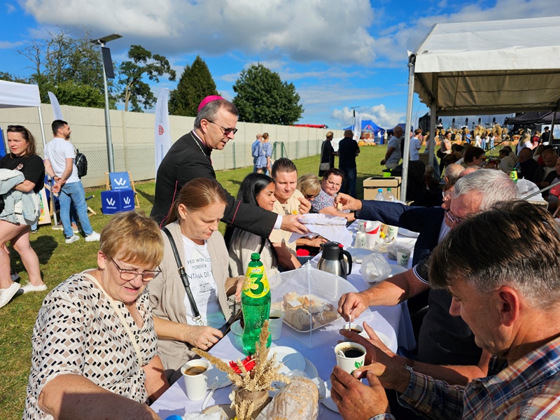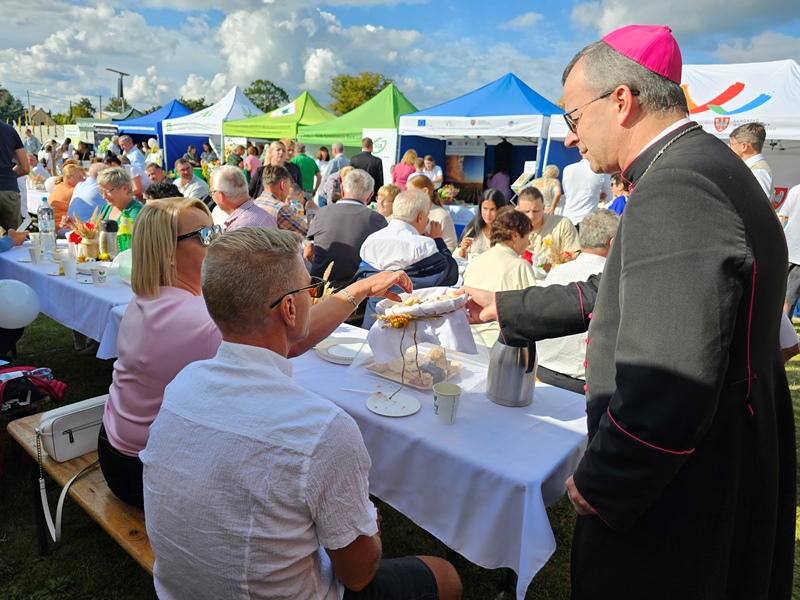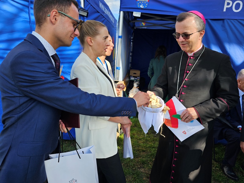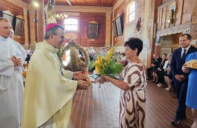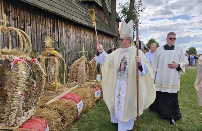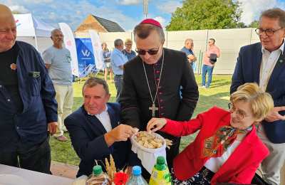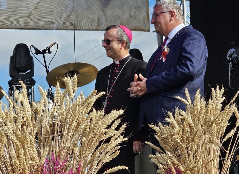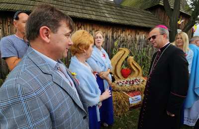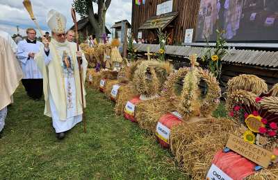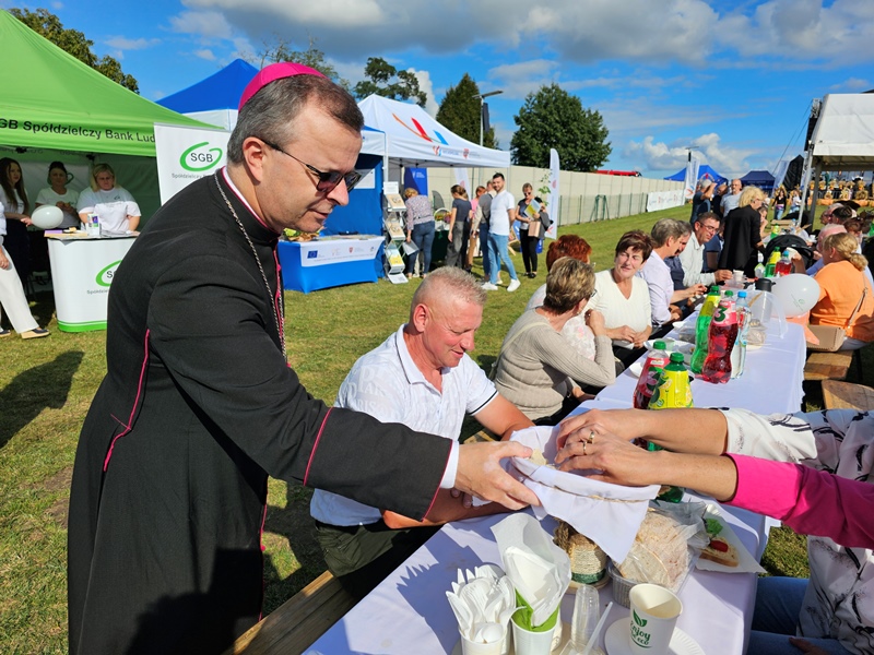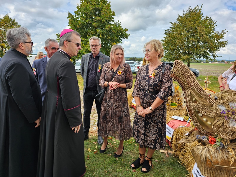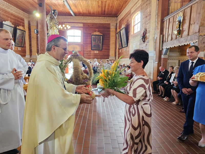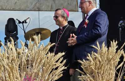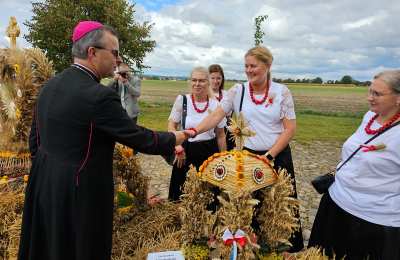 Prosił wiernych, aby pamiętali o tych, którym chleba brakuje. - Siostry i bracia rozejrzyjmy się wokół siebie, w naszych wioskach, w naszych miastach i przyjrzyjmy się, czy nie ma tych, którym chleba brakuje. Bogu dziękujemy, że w wielu miastach i gminach mamy dobrze rozwinięte organizacje pomocowe, ale ważne jest, żebyśmy my, ludzie wiary nie stracili wrażliwości, żebyśmy potrafili dostrzec potrzebujących. Może trzeba komuś przynieść chleb, bo nie ma możliwości pójścia do sklepu. Dbajmy o to, żeby chlebem sprawiedliwie dzielić się – wskazywał kaznodzieja. Przekonywał, że dożynki to szczególny czas, w którym wracamy do pięknych zwyczajów i tradycji. - Dożynki są ważne dla młodego pokolenia, żeby ich wprowadzać w pewną kulturę, zwyczaje, żeby uczyć ich pięknego patriotyzmu, mądrego zaangażowania na rzecz naszej ojczyzny i tych wszystkich małych ojczyzn, które w naszych gminach, w naszych wioskach tworzymy. Dbajmy, proszę o to – powiedział bp Bryl.