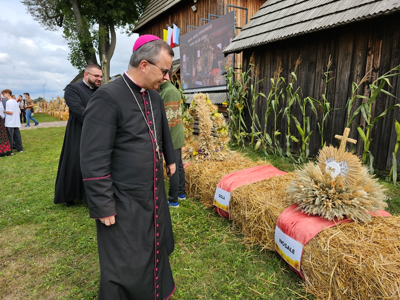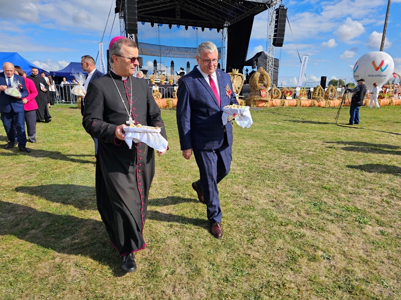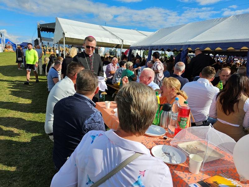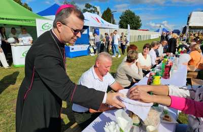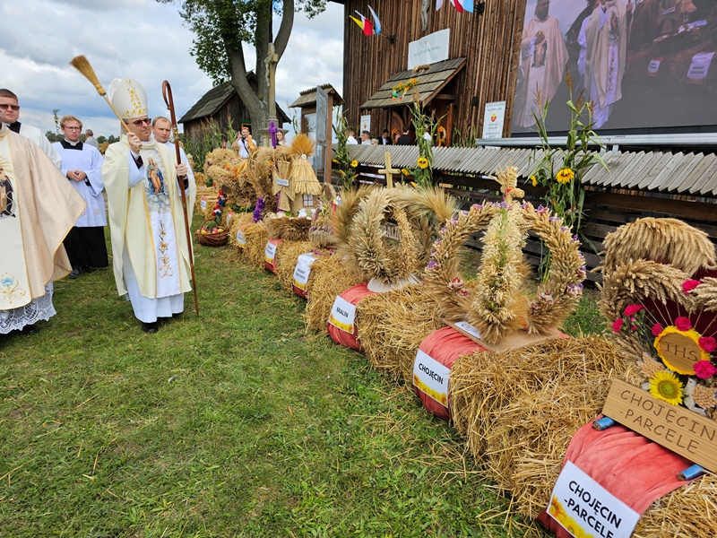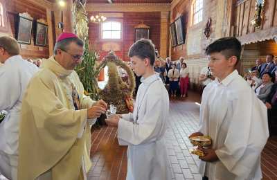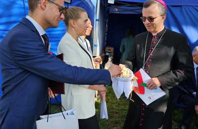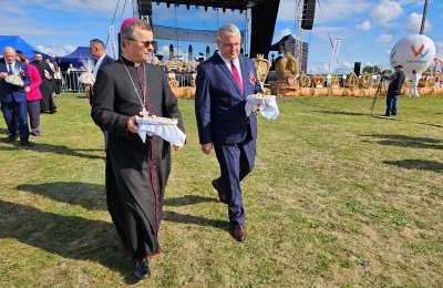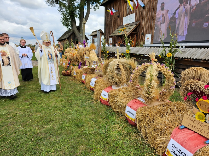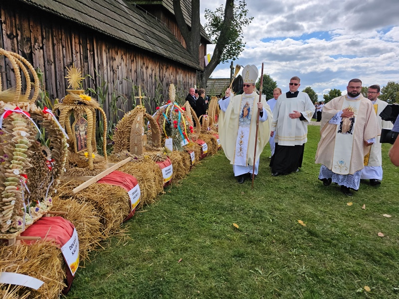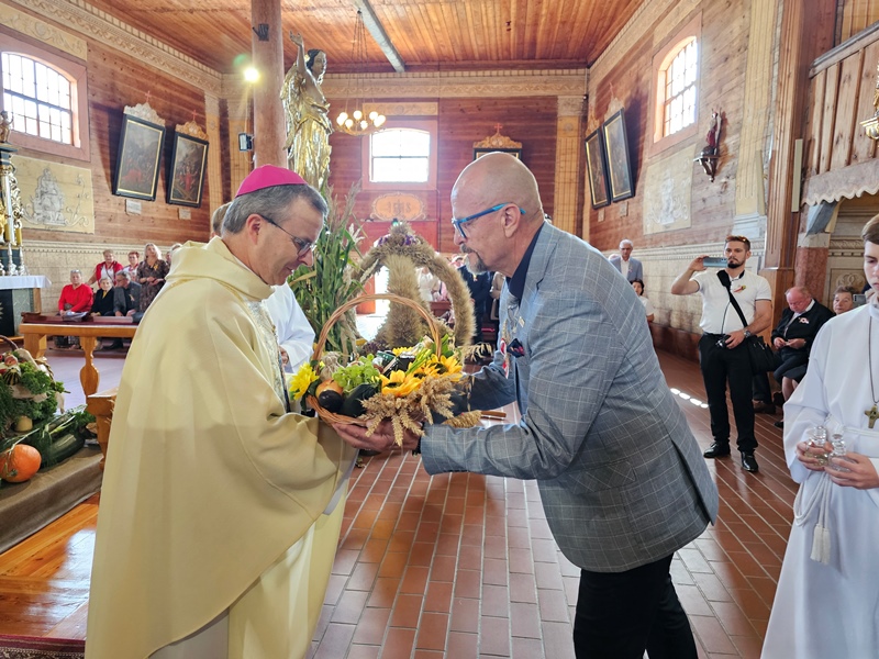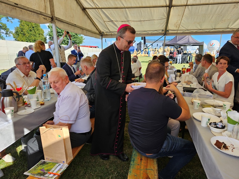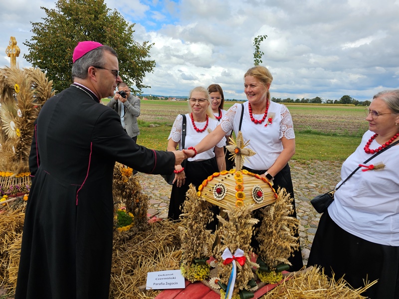 Prosił wiernych, aby pamiętali o tych, którym chleba brakuje. - Siostry i bracia rozejrzyjmy się wokół siebie, w naszych wioskach, w naszych miastach i przyjrzyjmy się, czy nie ma tych, którym chleba brakuje. Bogu dziękujemy, że w wielu miastach i gminach mamy dobrze rozwinięte organizacje pomocowe, ale ważne jest, żebyśmy my, ludzie wiary nie stracili wrażliwości, żebyśmy potrafili dostrzec potrzebujących. Może trzeba komuś przynieść chleb, bo nie ma możliwości pójścia do sklepu. Dbajmy o to, żeby chlebem sprawiedliwie dzielić się – wskazywał kaznodzieja. Przekonywał, że dożynki to szczególny czas, w którym wracamy do pięknych zwyczajów i tradycji. - Dożynki są ważne dla młodego pokolenia, żeby ich wprowadzać w pewną kulturę, zwyczaje, żeby uczyć ich pięknego patriotyzmu, mądrego zaangażowania na rzecz naszej ojczyzny i tych wszystkich małych ojczyzn, które w naszych gminach, w naszych wioskach tworzymy. Dbajmy, proszę o to – powiedział bp Bryl.