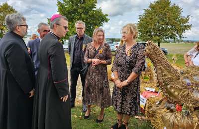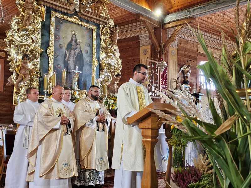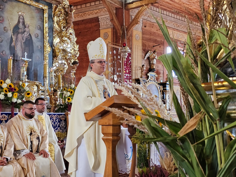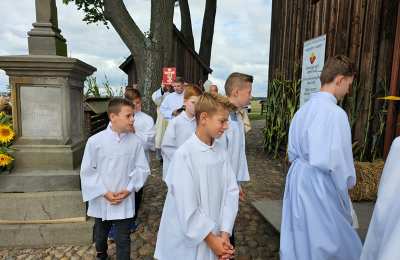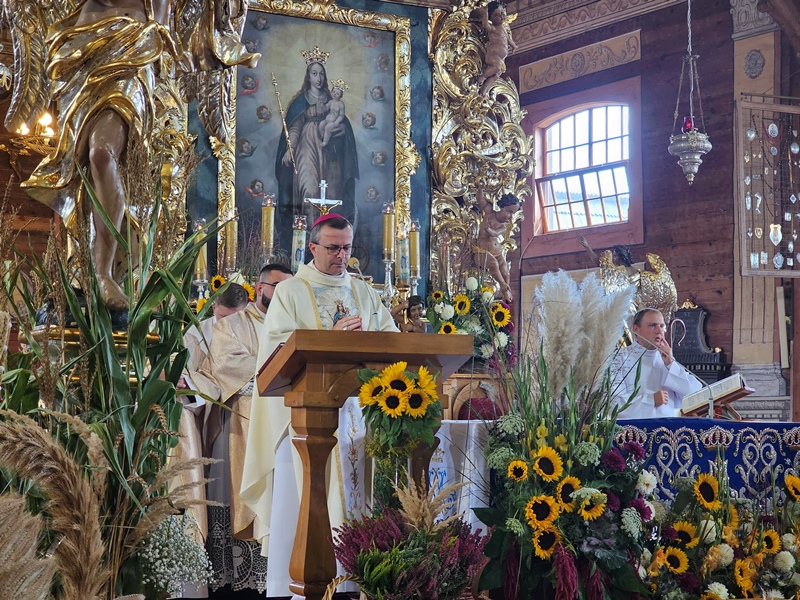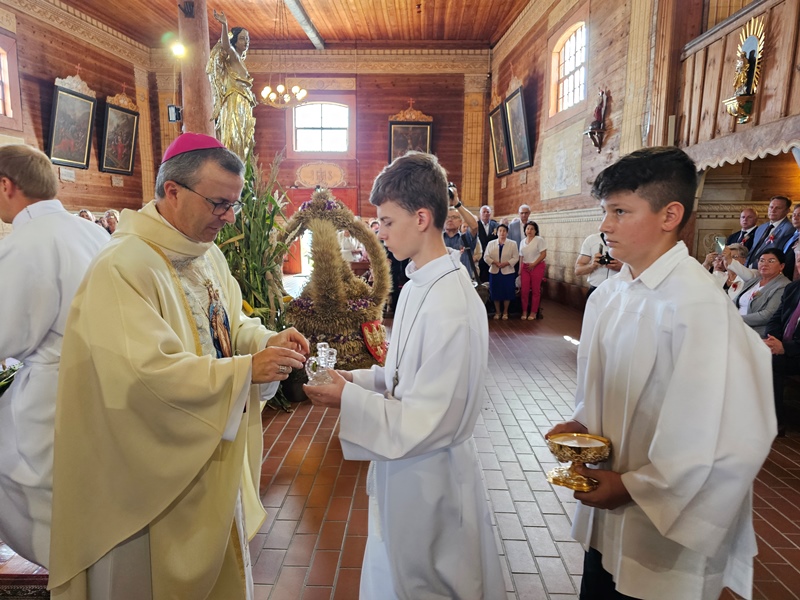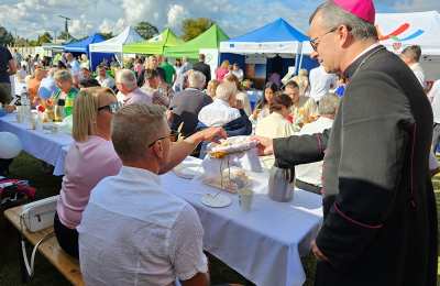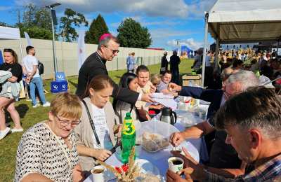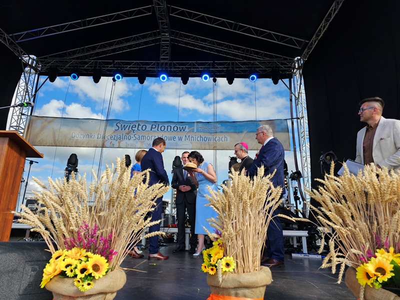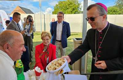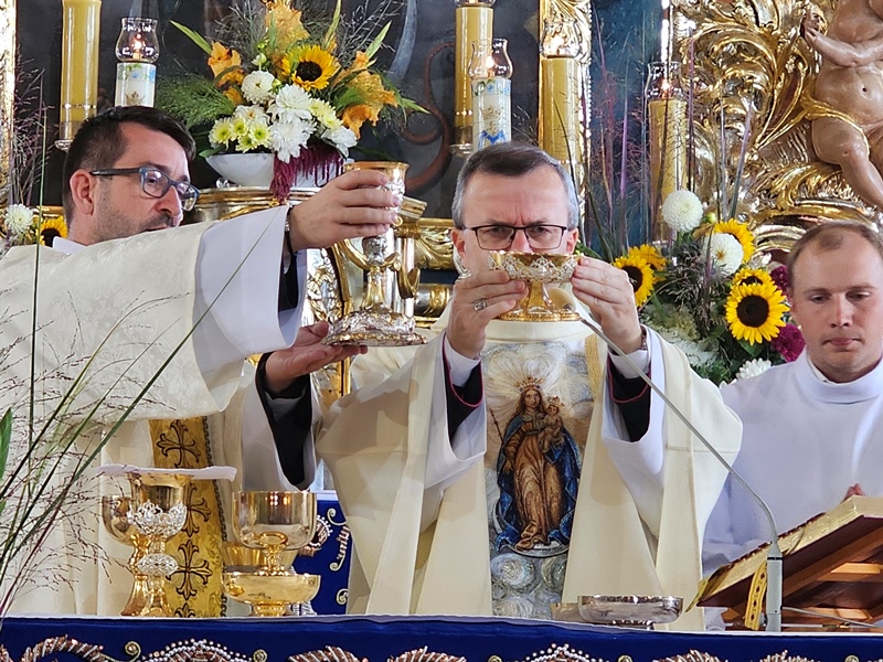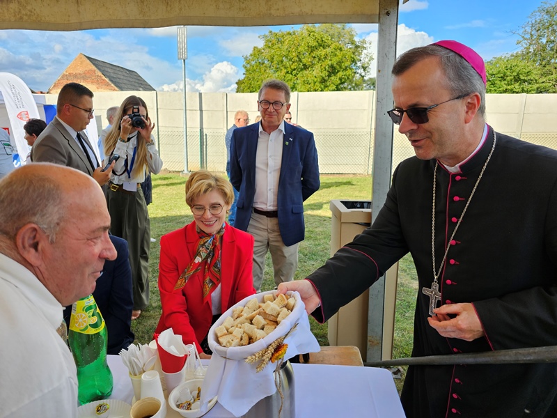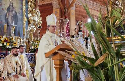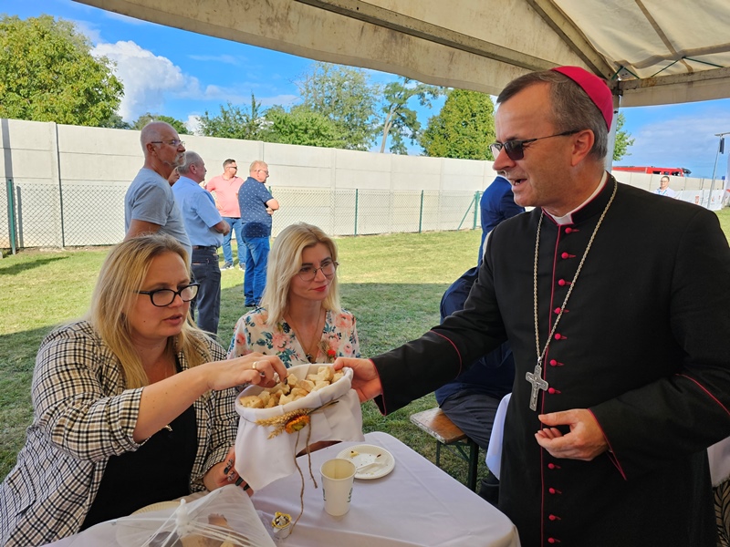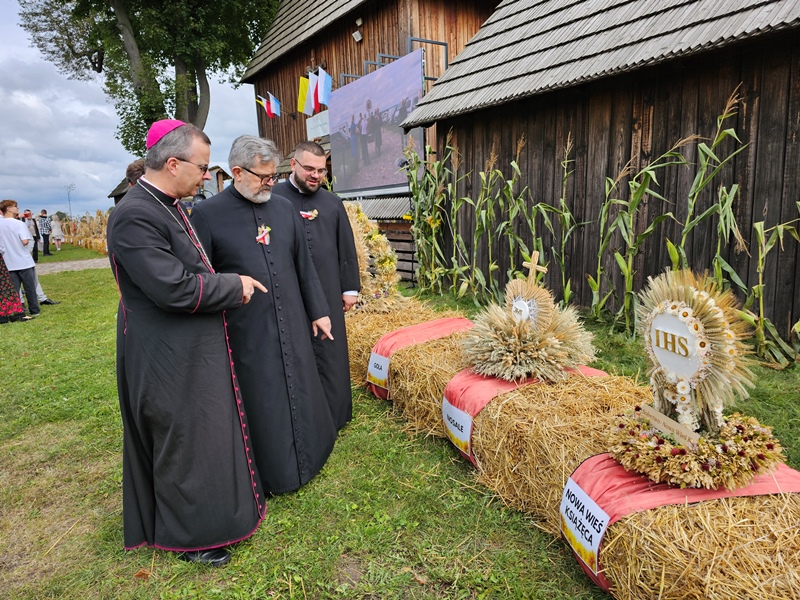 Prosił wiernych, aby pamiętali o tych, którym chleba brakuje. - Siostry i bracia rozejrzyjmy się wokół siebie, w naszych wioskach, w naszych miastach i przyjrzyjmy się, czy nie ma tych, którym chleba brakuje. Bogu dziękujemy, że w wielu miastach i gminach mamy dobrze rozwinięte organizacje pomocowe, ale ważne jest, żebyśmy my, ludzie wiary nie stracili wrażliwości, żebyśmy potrafili dostrzec potrzebujących. Może trzeba komuś przynieść chleb, bo nie ma możliwości pójścia do sklepu. Dbajmy o to, żeby chlebem sprawiedliwie dzielić się – wskazywał kaznodzieja. Przekonywał, że dożynki to szczególny czas, w którym wracamy do pięknych zwyczajów i tradycji. - Dożynki są ważne dla młodego pokolenia, żeby ich wprowadzać w pewną kulturę, zwyczaje, żeby uczyć ich pięknego patriotyzmu, mądrego zaangażowania na rzecz naszej ojczyzny i tych wszystkich małych ojczyzn, które w naszych gminach, w naszych wioskach tworzymy. Dbajmy, proszę o to – powiedział bp Bryl.