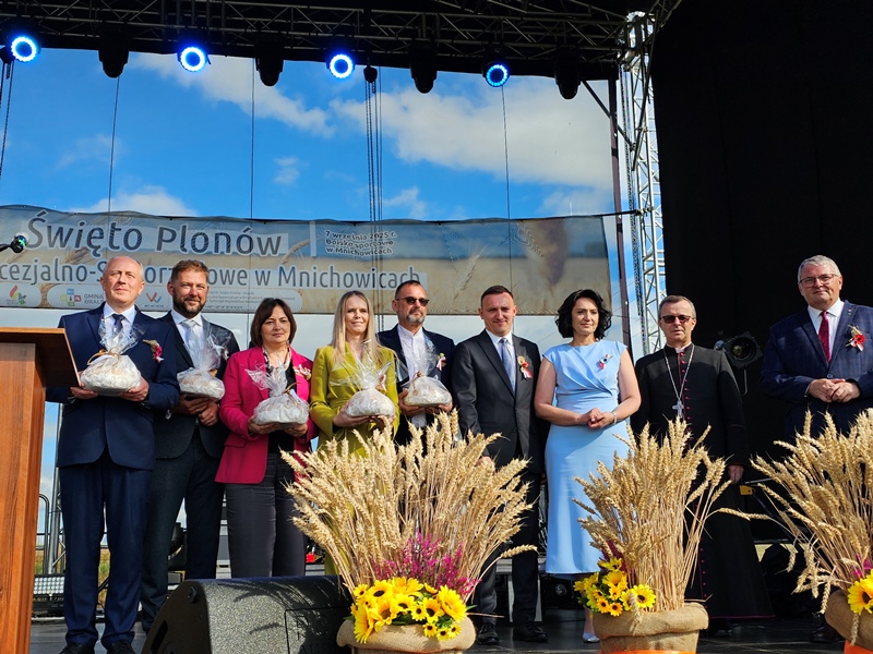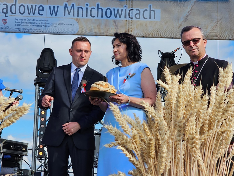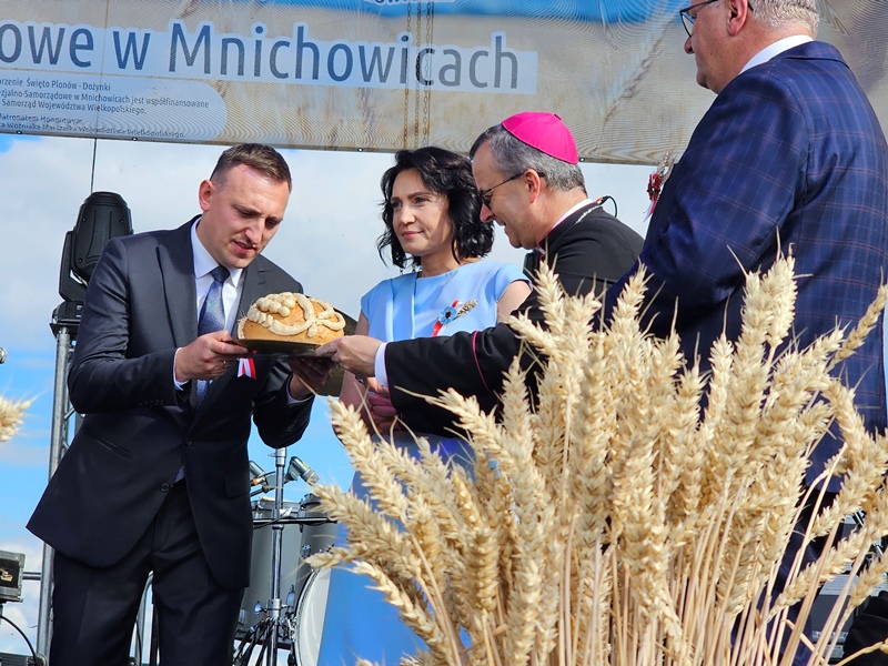 Po Eucharystii korowód dożynkowy udał się do Mnichowic, gdzie starostowie dożynek Aneta Parzonka i Andrzej Białek z Mnichowic złożyli bochen chleba na ręce biskupa kaliskiego Damiana Bryla, wicemarszałka województwa wielkopolskiego Krzysztofa Grabowskiego, starosty kępińskiego Alicji Śniegockiej i wójta gminy Bralin Karola Wanzka.