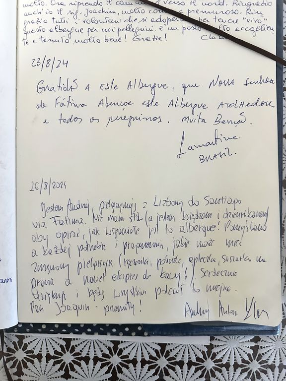 Od rana spędzam sporo czasu w kaplicy Objawień. Chociaż raz mogę na spokojnie pomodlić się brewiarzem. Chyba jeszcze nie wspominałem, ale podczas Camino często korzystam z możliwości odmawiania modlitw brewiarzowych w drodze dzięki aplikacji telefonicznej – na głos sobie razem recytujemy psalmy, głos z aplikacji i ja ;) Czasami modlę się z wersją włoską, która jest śpiewana. No ale tutaj w Fatimie ta modlitwa znowu może być bardziej kontemplacyjna. I dobrze mi tu, blisko Matki. Wszystko, co „niosę” w moim plecaku mogę tutaj przed nią rozładować. Każdą osobę, każdą intencję, przede wszystkim każdy ból wszystkich, którzy prosili o modlitwę o zdrowie... Mia, Anna, Klaudia, Sławek, drugi Sławek, Damian, Krzysztof i wielu, wielu innych. To jest ten moment zawierzenia ich wszystkich. Z serca do Serca. I moje serce naprawdę czuje się przytulone i ogrzane.