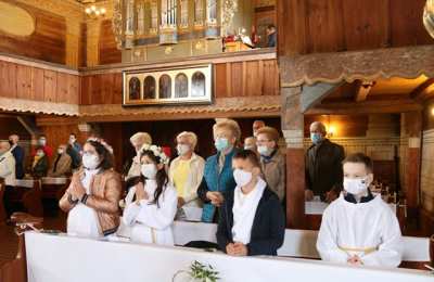 o. Kordeckiego, obrońcy Jasnej Góry. Do Matki Bożej Pólkowskiej przybyła też pielgrzymka dzieci pierwszokomunijnych z parafii w Skałągach.