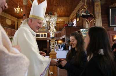 W czasie Mszy św. przyjęto do Akcji Katolickiej dwie nowe członkinie z parafii św. Floriana w Pleszewie. Spotkanie było okazją do złożenia życzeń bp. Łukaszowi, paulinowi, który 8 czerwca będzie obchodził 25-lecie święceń. Członkowie Akcji Katolickiej ofiarowali Jubilatowi obraz