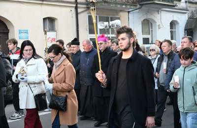 Po Eucharystii do obecnych w konkatedrze zwrócił się ks. bp Damian Bryl i przypomniał, że Droga Światła jest przede wszystkim zaproszeniem do tego, żeby lepiej, głębiej, mocniej przeżyć Wielkanoc, czyli prawdę o tym, że Jezus umarł na krzyżu, ale zmartwychwstał, żyje i jest wśród nas. Życzył wszystkim, aby był to dla nich ważny czas wyznania wiary. – Ta Droga Światła jest dla nas publicznym, jednoznacznym wyznaniem wiary, że naszym Panem jest Jezus Chrystus Zmartwychwstały. Pan, który przeszedł przez śmierć, daje życie i jest naszą radością, nadzieją i umocnieniem. Chcemy ogłosić miastu, że Ten, za którym idziemy jest Bogiem pełnym miłości miłosiernej, miłości, która pochyla się nad każdym, szczególnie nad tym, który się gdzieś zagubił. Chrystus nikogo nie odrzuca. Chcemy tę prawdę wyrazić naszymi modlitwami i świadectwem – mówił ks. bp Bryl.