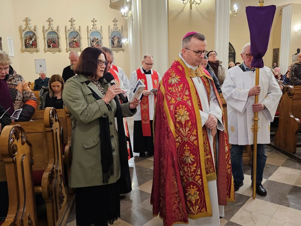 – Przeszliśmy drogę cierpienia, bólu, krwi, ale także drogę miłości, drogę łaski. Ta droga tak trudna, dramatyczna jest drogą łaski, ponieważ dzięki tej drodze niebo przed nami otwiera się. Ta droga jest drogą łaski, ponieważ dzięki niej możemy żyć w jedności z Ojcem na wieki. Ta droga jest drogą łaski, ponieważ przemienia nas i stajemy się bardziej Jezusowi, na Jego wzór, tak jak On chciał. Niech to dzisiejsze zadumanie i przeżycia pomogą nam bardziej jeszcze Jezusa poznać, mocniej kochać i wierniej naśladować – mówił bp Damian Bryl na zakończenie Drogi krzyżowej. – Te dwie Drogi krzyżowe w Ostrowie i Kaliszu mają nas wprowadzić w misterium Męki Pańskiej. Poprzez przygotowane utwory i rozważania chcemy otworzyć nasze serca i współcierpieć z Chrystusem – podkreślił ks. Adam Kraska, diecezjalny duszpasterz środowisk twórczych.