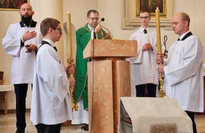 W homilii biskup kaliski dziękował rodzicom za pogodzenie się z wolą Bożą, aby syn został kapłanem a córka siostrą zakonną. - Jedną sprawą jest odczytać Boże powołanie, a drugą sprawą jest zgodzić się na to. Ta zgoda następuje na różnych poziomach. Z jednej strony potrzeba zgody zainteresowanego, ale także potrzeba zgody albo przynajmniej pogodzenia się ze strony najbliższych, szczególnie rodziców – stwierdził kaznodzieja. Prosił rodziców o modlitwę w intencji swoich dzieci. – Bardzo ważna jest modlitwa wstawiennicza. Takim pięknym doświadczeniem jest to jak rodzice towarzyszą swoim dzieciom modląc się za nich, szczególnie wtedy, gdy nie mają bezpośredniego kontaktu codziennego, ale przecież ciągle są ich dziećmi i ciągle ich w sercu noszą, mimo że są dorosłymi dziećmi – zaznaczył pasterz Kościoła kaliskiego. Zachęcał rodziny osób powołanych, aby pogłębiali swoje życie duchowe. - Chciałbym drodzy, żeby to doświadczenie, że Pan Bóg w waszej rodzinie wybrał osobę do szczególnej misji w Kościele było takim dobrym zaproszeniem, aby zatroszczyć się o swoje życie duchowe i to życie pogłębiać. Dzisiaj słowo Boże zaprasza nas, żebyśmy rozwijali szczególnie nasze życie modlitwy – przekonywał bp Bryl. Po Mszy św. wszystkich zaproszono na obiad. W programie dnia skupienia była także projekcja filmu „Mama”. Spotkanie zakończyła modlitwa różańcowa.