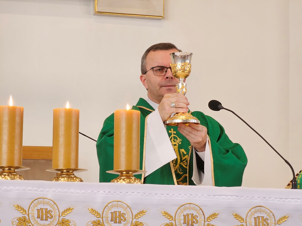 Mszy św. przewodniczył biskup kaliski Damian Bryl, który dziękował rodzicom za stworzenie w domach przestrzeni dla rozwoju duchowego swoich dzieci. Spotkanie rozpoczęła konferencja, którą wygłosił ks. dr Waldemar Graczyk. – Ten dzień skupienia przeżywamy w duchu bł. ks. Jerzego Popiełuszki i jego mamy Marianny. 19 października obchodzimy wspomnienie bł. ks. Popiełuszki i dlatego ta data skłoniła mnie ku temu, żeby tym osobom poświęcić dzień skupienia. Chciałem ukazać relację pomiędzy synem a matką. Z jednej strony to była relacja bardzo zwyczajna, czyli miłość matki do syna i syna do matki, a z drugiej strony relacja nadzwyczajna, bo relacja osób, które były bardzo blisko Pana Boga – powiedział wicerektor Arcybiskupiego Seminarium Duchownego w Poznaniu i referent ds. powołań kapłańskich w diecezji kaliskiej. Dodał, że mama Marianna była obecna na beatyfikacji swojego syna i niosła jego relikwie. – Była to niezwykła relacja, która pokazała przejście od krzyża do chwały zmartwychwstania. Kapłaństwo ks. Jerzego rodziło się już w domu właśnie dzięki wychowaniu przez świątobliwych, dobrych rodziców Mariannę i Władysława Popiełuszków. To pierwsze seminarium było w domu rodzinnym w Okopach – stwierdził ks. Graczyk.