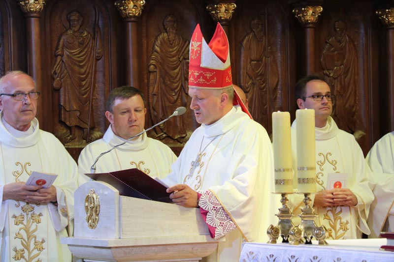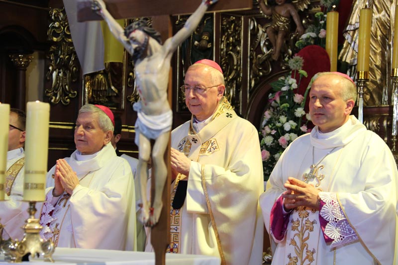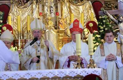 Niedziela, 23 czerwca przeszła do historii miasta Krotoszyna. Właśnie tego dnia nastąpiło uroczyste wyniesienie fary do godności bazyliki mniejszej podczas Mszy św. pod przewodnictwem abp. Stanisława Gądeckiego. W słowach powitania biskup kaliski Edward Janiak dziękował kapłanom i wiernym, którzy zaangażowali się w starania o nadanie świątyni tytułu bazyliki. – Niech ta dzisiejsza uroczystość zanosi do nieba nasze dziękczynienie za żywy Kościół, młodzież, dzieci. Dziękując za Kościół wypraszamy też dar wiary i opieki nad naszą ojczyzną. Z pokorą prosimy, aby w tych niełatwych czasach byli odważni świadkowie Chrystusa, żeby w tej Europie dawali świadectwo miłości do Pana Boga i Kościoła – powiedział Pasterz diecezji.