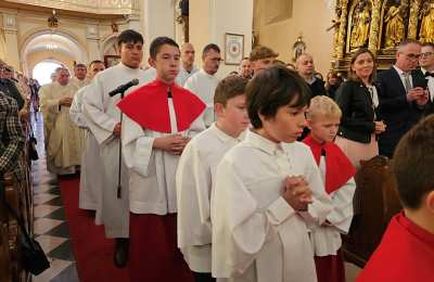 Na początku Mszy św. ks. prałat Aleksander Gendera wyraził radość, że w Krotoszynie udało się utworzyć kaplicę Wieczystej Adoracji Najświętszego Sakramentu. – To wyjątkowe miejsce, w dzień i w nocy, będzie przestrzenią spotkania i żywą obecnością Chrystusa, który pozostał z nami w Eucharystii – powiedział kustosz krotoszyńskiej bazyliki. Dziękował biskupowi Damianowi Brylowi za inspirację, Fundacji Adoremus Te Christe za przeprowadzone misje i sprawną organizację kaplicy. Słowa wdzięczności skierował do kapłanów z dekanatu krotoszyńskiego, koźmińskiego i zdunowskiego, koordynatorów i wszystkich, którzy zapisali się na adorację.