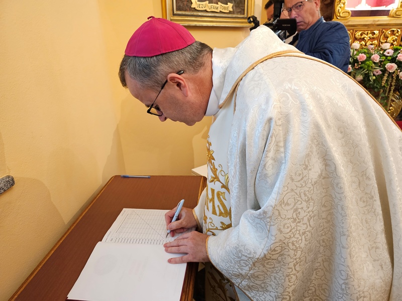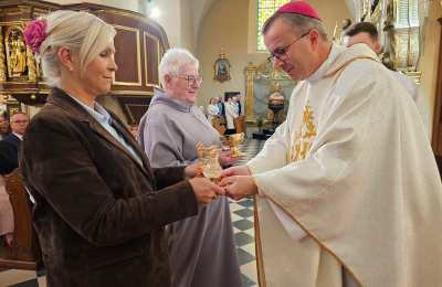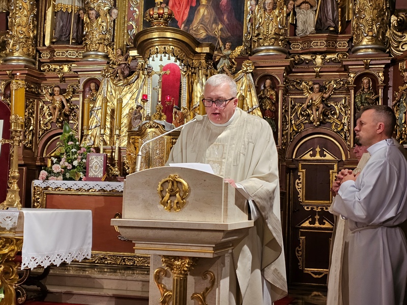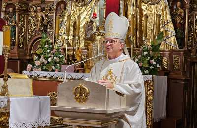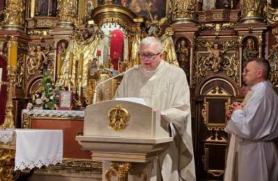 W homilii celebrans wskazywał, że spotkanie z Chrystusem eucharystycznym zawsze jest przemieniające. – To spotkanie nie tylko przemienia tego, który się modli, ale przemienia także wspólnotę Kościoła. Ufam, że ta adoracja będzie przemieniać oblicze waszej parafii oraz Krotoszyna i okolic. Jestem przekonany, że dzieło adoracji będzie przemieniać oblicze naszej diecezji – mówił bp Bryl. Akcentował, że godzina spędzona w tej kaplicy nie jest rodzajem ucieczki od problemów, ale jest to godzina, którą człowiek oddaje Bogu, aby zaprosić Go do swojej rodziny, swoich obowiązków i zadań. – Do Jezusa przychodzi się, choć czasami szybko, żeby nabrać siły i wrócić do codzienności – stwierdził kaznodzieja. Przekonywał, że kaplica Wieczystej Adoracji powinna być miejscem modlitwy wstawienniczej. – Wstawiennictwo jest najpiękniejszą formą miłości drugiego człowieka. Ta kaplica jest miejscem, które otwiera serce, w którym zanoszę Jezusowi tych wszystkich, których kocham, którzy mnie o modlitwę prosili, ale także zanoszę tych, których trudno mi jest kochać albo których nie potrafię kochać, żeby Jezus przemieniał moje serce, by zaczęło kochać – mówił bp Bryl.