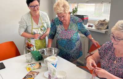 Pani Małgorzata zaznaczyła także, że poza zabawą i różnymi zajęciami chętnie angażują się w pomoc innym. Ona sama pewnego czasu pomogła panu, który sprowadził się w okolice i trzeba było mu pomóc. – Syn tego pana zgłosił się do wolontariatu z prośbą o pomoc przy rozpakowywaniu i ja chętnie podjęłam się tego zadania. Przez dwa dni pomagałam mu się rozpakować i urządzić w nowym miejscu – wspomina pani Małgorzata podkreślając przy tym, że gdyby wiedziały o innych osobach, które potrzebują pomocy, to chętnie by pomagały w razie potrzeby.