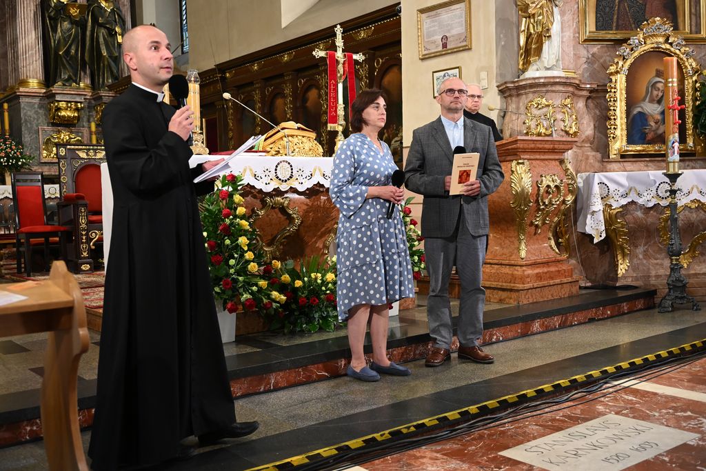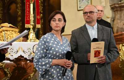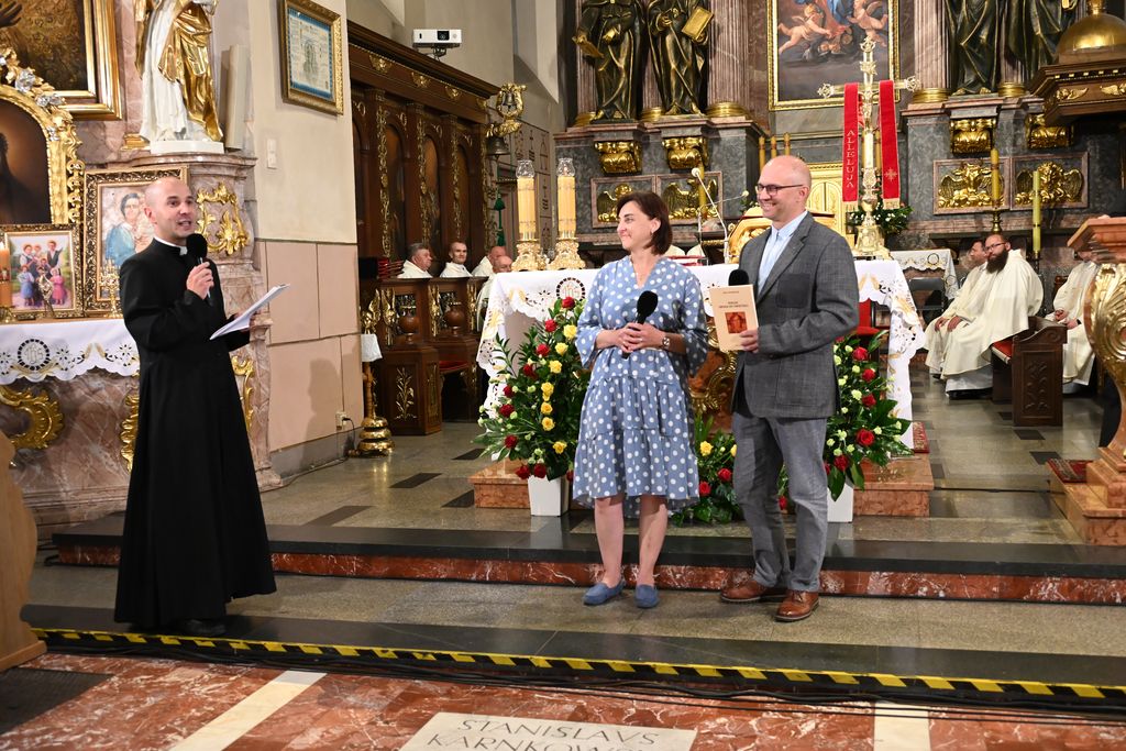 A skoro rozmowa dotyczyła małżeństw, nie mogło zabraknąć tych, którzy od wielu lat są małżonkami i czynnie udzielają się w stowarzyszeniu. Państwo Elżbieta i Marcin Woźniakowie mimo, iż na stałe mieszkają w Warcie (diecezja włocławska) są liderami kaliskiego ośrodka Spotkań Małżeńskich. Rozmowę z gośćmi prowadził ks. Mateusz Puchała, dyrektor Radia Rodzina i Telewizji Internetowej Dom Józefa, który wprowadzając w temat konferencji również przypomniał o rocznicy wizyty św. papieża Jana Pawła II i o swoistym testamencie, który pozostawił i który od 2004 r. jest realizowany w kaliskim sanktuarium św. Józefa. - Chciałbym podkreślić, że dzisiejsze spotkanie jest 253 spotkaniem modlitewnym, które regularnie odbywa się w tym miejscu i za każdym razem związane z życiem i z rodziną – zaznaczył ks. Puchała.