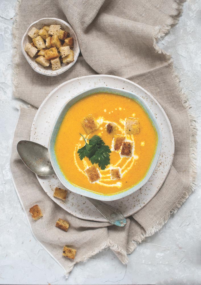 Rozgrzewający krem z marchwi z pomarańczą i grzankami