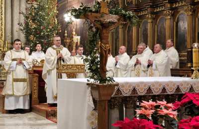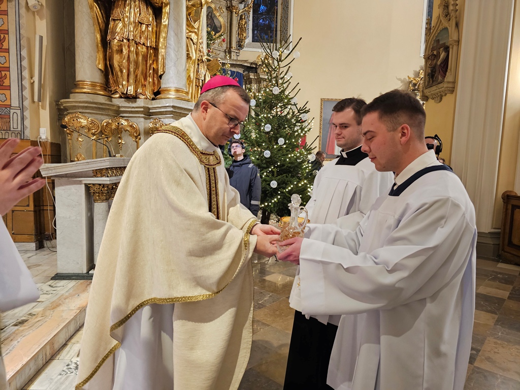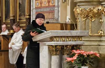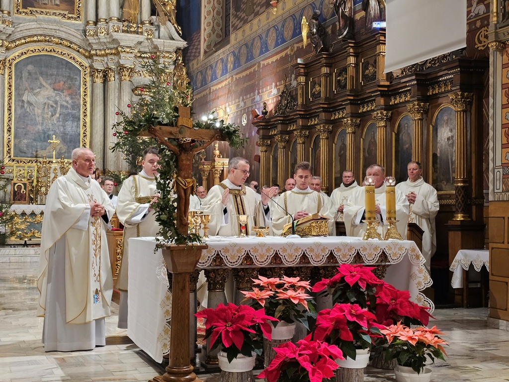 Podczas Mszy św. miała miejsce rozbudowana modlitwa powszechna, a w procesji z darami przedstawiciele kościołów jubileuszowych przynieśli kroniki opisujące wydarzenia związane z Rokiem Jubileuszowym. Złożono także dar wsparcia dla matek samotnie wychowujących dzieci i rodzin znajdujących się w trudnej sytuacji materialnej, który pochodzi ze środków zebranych we wszystkich parafiach na Fundację Pro Familia podczas tegorocznych Pasterek. Komunia św. wszystkim wiernym została udzielona pod dwiema postaciami. Po Komunii św. odśpiewano hymn dziękczynny Te Deum. Celebracja zakończyła się błogosławieństwem. Z ks. biskupem Mszę św. koncelebrowali bp pomocniczy Łukasz Buzun, księża dziekani, proboszczowie kościołów jubileuszowych i inni kapłani przybyli na uroczystość.