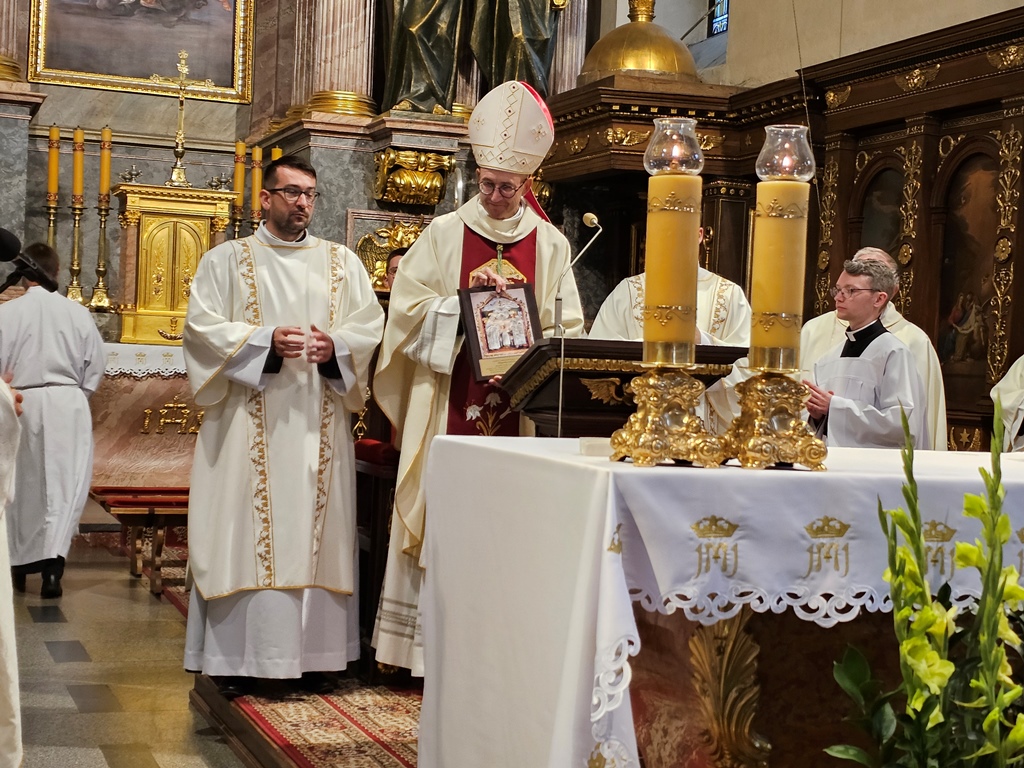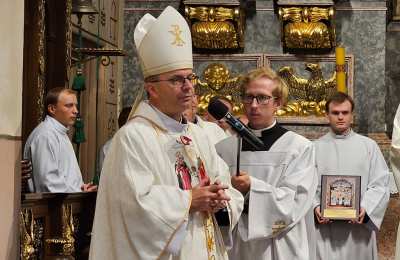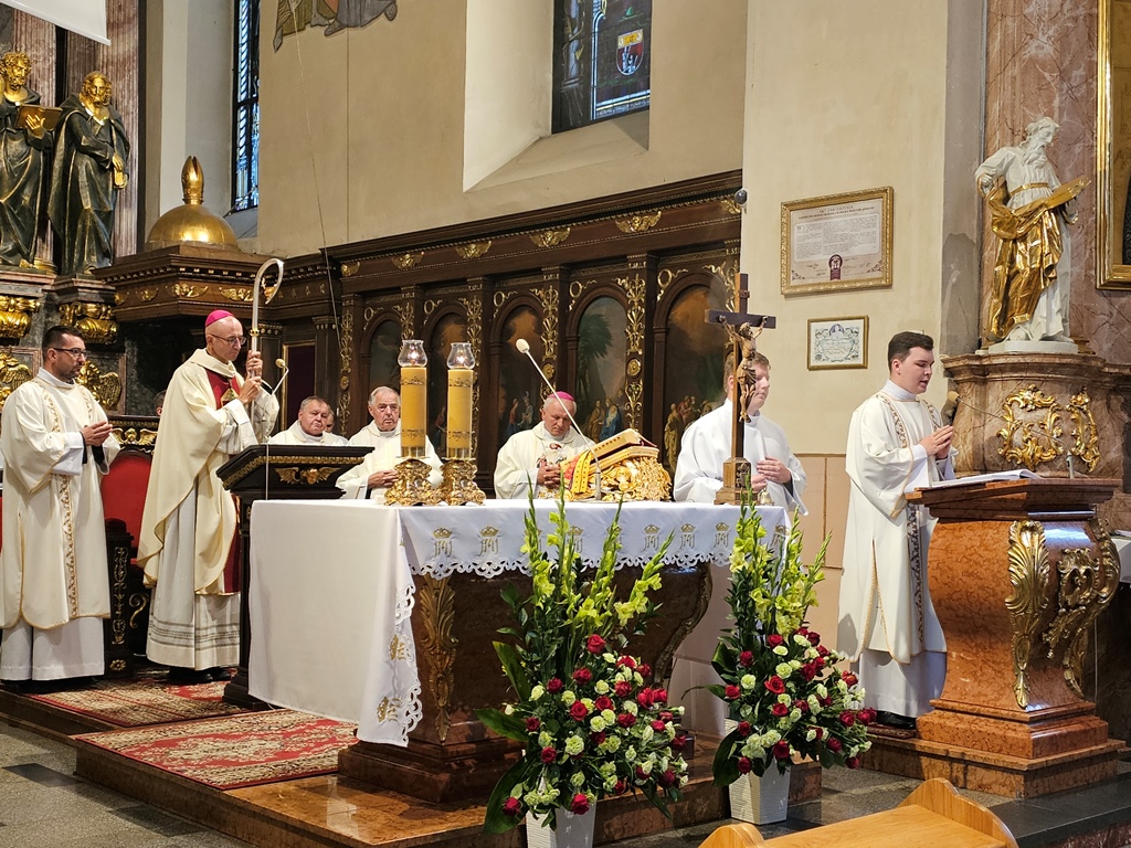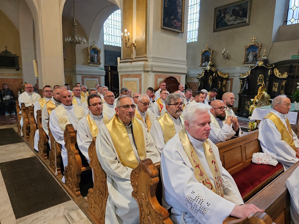 Po Komunii Świętej w kaplicy Cudownego Obrazu Świętego Józefa Kaliskiego, biskup kaliski Damian Bryl odmówił akt zawierzenia św. Józefowi duchowieństwa diecezji kaliskiej. W swoim słowie ks. biskup dziękował księżom za służbę, pracę i oddanie w diecezji kaliskiej. – Chciałbym podziękować wam drodzy księża przede wszystkim za waszą pracę codzienną w parafiach, we wszystkich miejscach, gdzie jesteście. Dziękuję. Prośmy dobrego Boga, aby umacniał te wszystkie nasze wysiłki i zmagania – powiedział ks. biskup Damian Bryl.