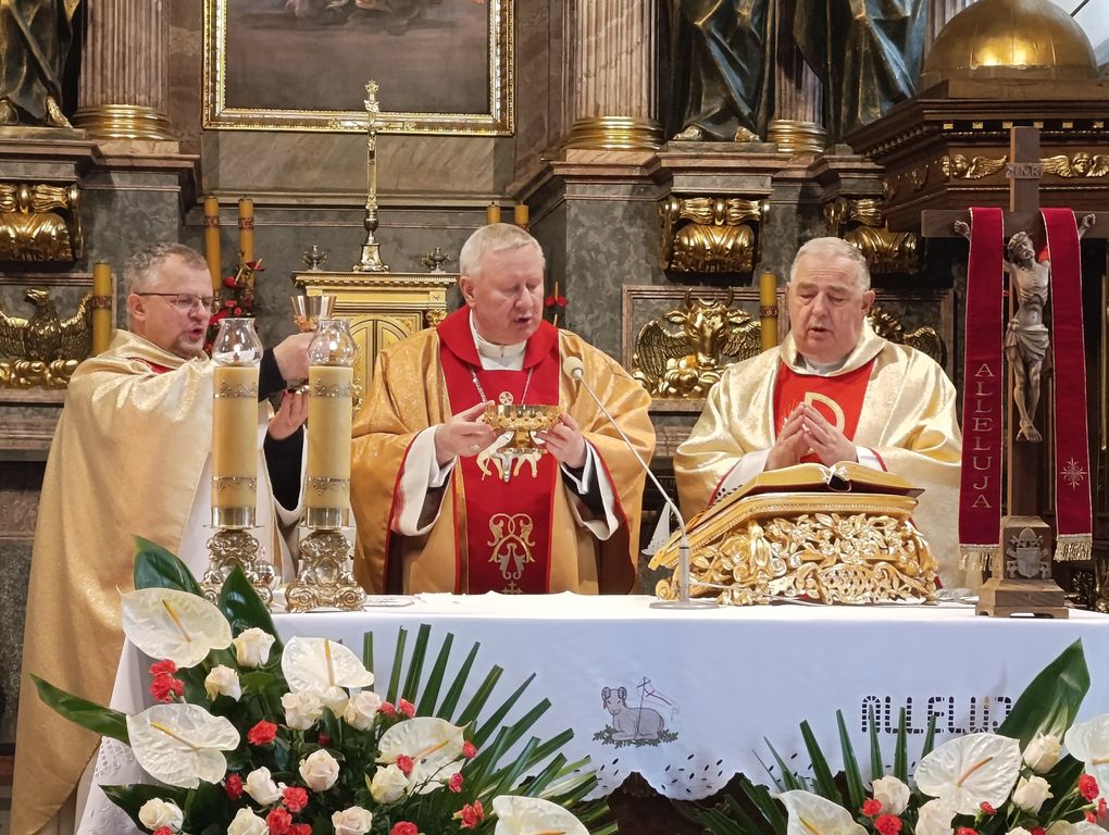 Akcentował, że są też dowody pośrednie zmartwychwstania Chrystusa, z którymi mamy do czynienia aż do dziś, m.in. istnienie Kościoła, chrzest, Eucharystia, wiara chrześcijan. – Pierwsze Credo (wyznanie wiary) brzmiało bardzo krótko: Jezus Kyrios, tzn. Jezus jest Panem, bo zwyciężył śmierć. Św. Paweł podkreśla: „Gdyby Chrystus nie zmartwychwstał, próżna byłaby nasza wiara”. Zmartwychwstanie było też pierwszą dobrą nowiną, jaką głoszono. Także zmartwychwstanie zadecydowało o tym, że tę dobrą nowinę spisano i tak powstały Księgi Nowego Testamentu – zaznaczył kaznodzieja.