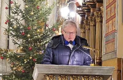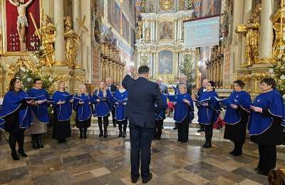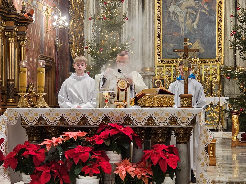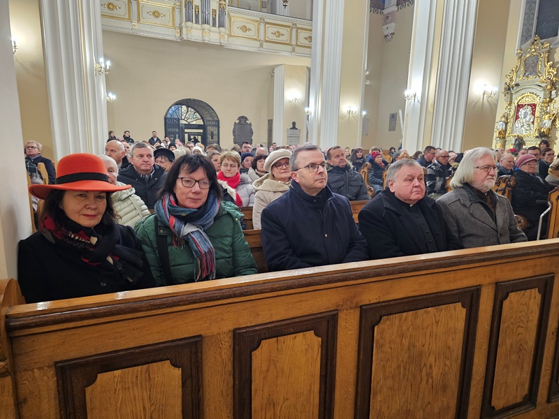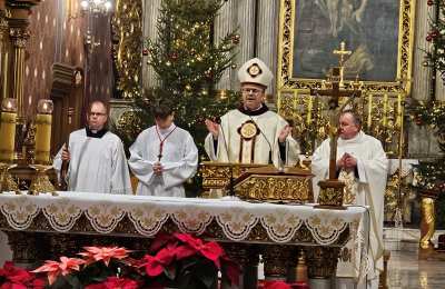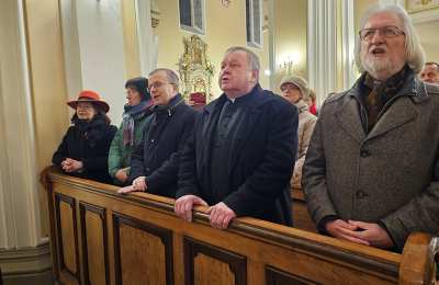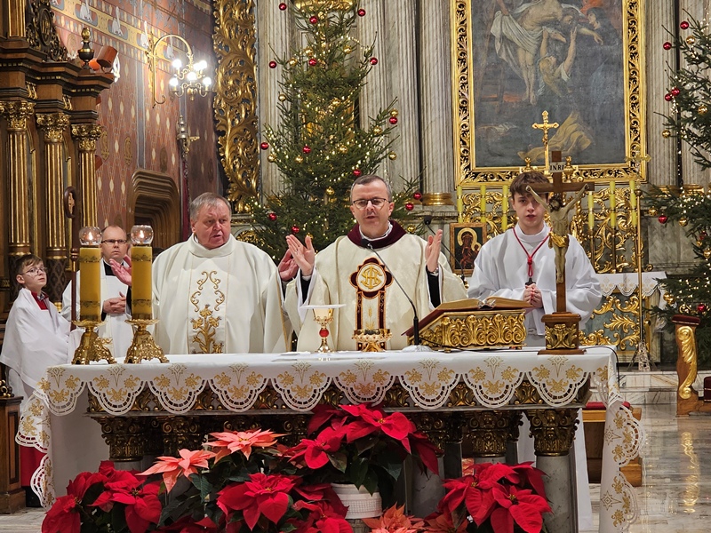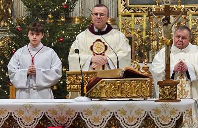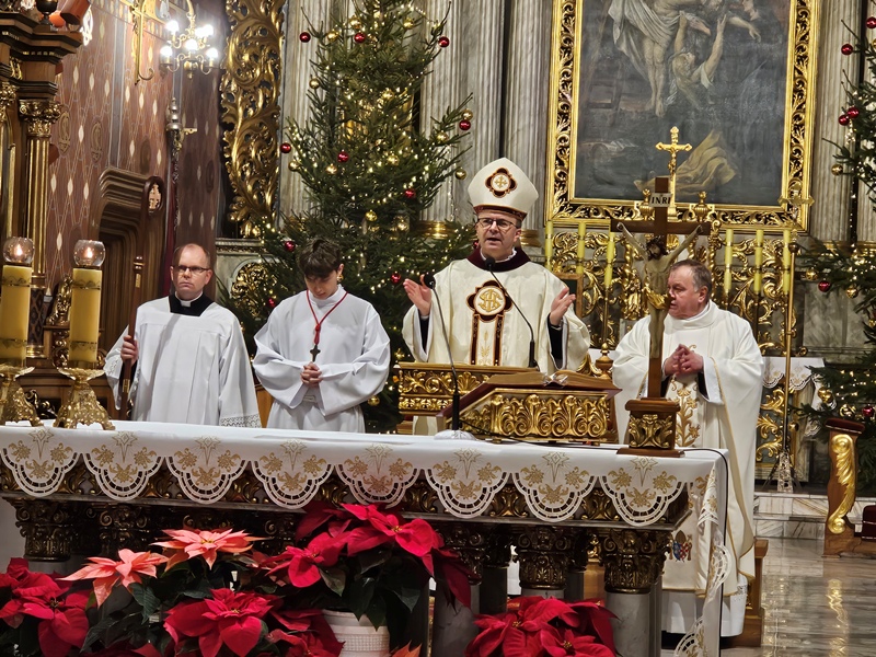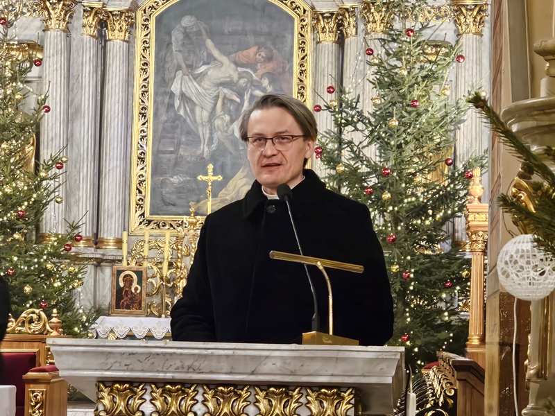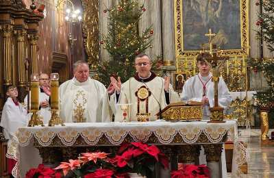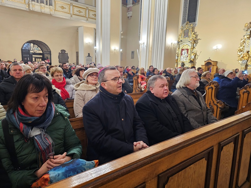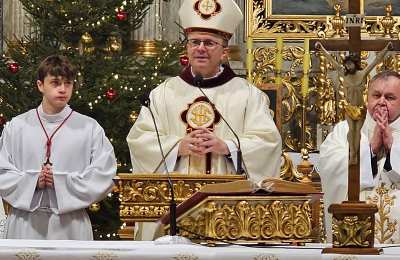 Kolędowanie w katedrze 11 stycznia poprzedziła Msza św. pod przewodnictwem biskupa kaliskiego Damiana Bryla, który w homilii dziękował chórzystom i muzykom za możliwość wspólnego kolędowania. - Bardzo dziękuję wam drodzy i szanowni członkowie orkiestry i chórów, że jesteście dzisiaj razem z nami tutaj w katedrze i że możemy nie tylko was słuchać, ale możemy razem z wami Boga uwielbiać. Ufamy, że wspólne uwielbienie Boga poruszy nasze serca i otworzy je na Niego – mówił bp Bryl.