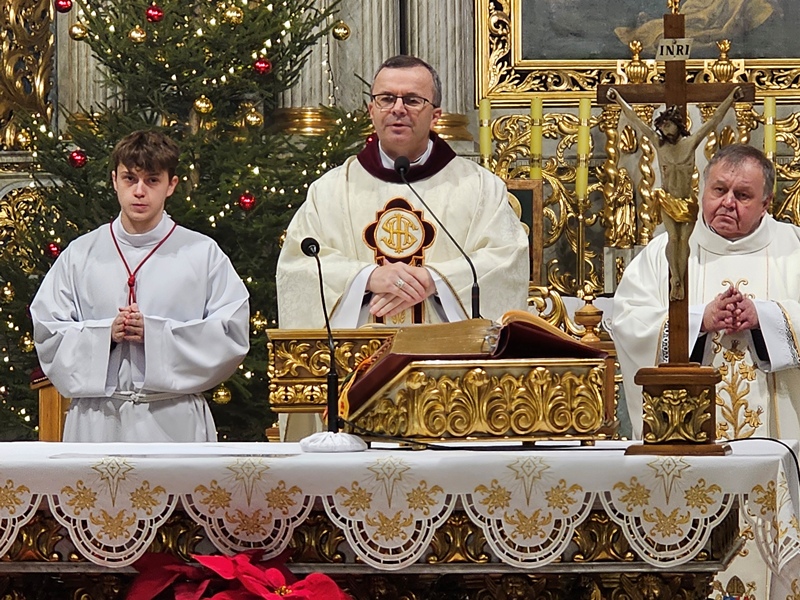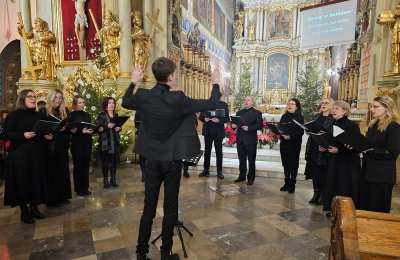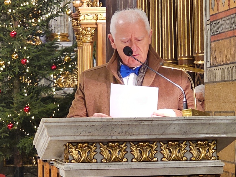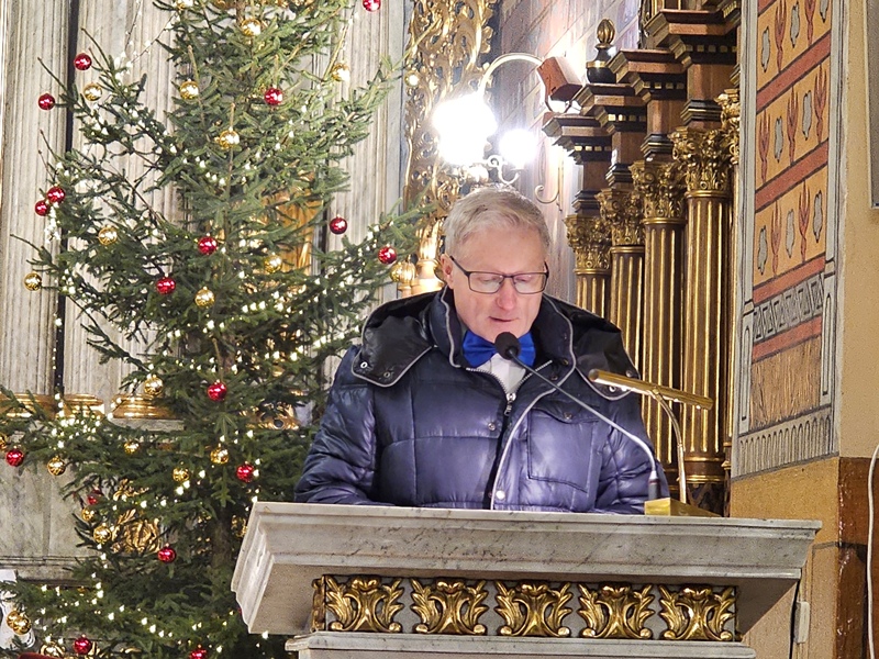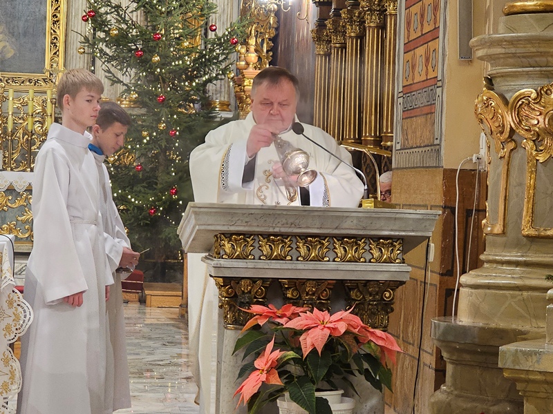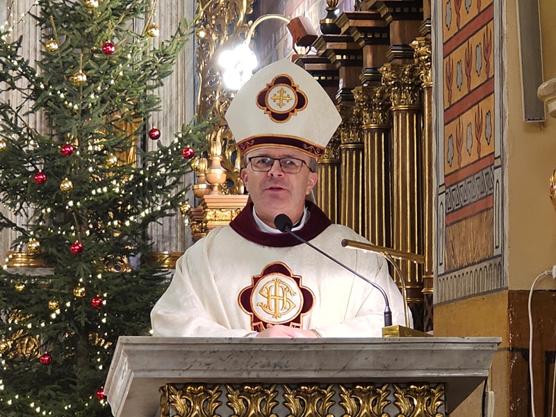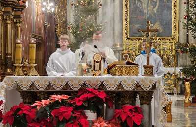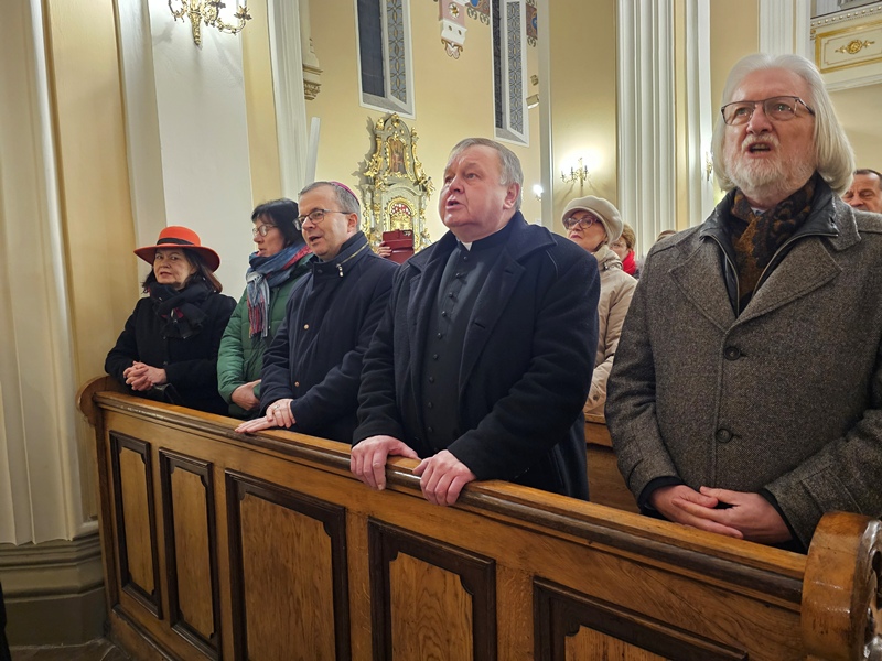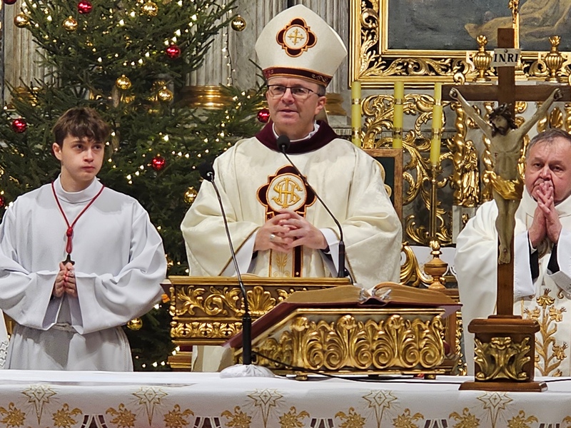 Kolędowanie w katedrze 11 stycznia poprzedziła Msza św. pod przewodnictwem biskupa kaliskiego Damiana Bryla, który w homilii dziękował chórzystom i muzykom za możliwość wspólnego kolędowania. - Bardzo dziękuję wam drodzy i szanowni członkowie orkiestry i chórów, że jesteście dzisiaj razem z nami tutaj w katedrze i że możemy nie tylko was słuchać, ale możemy razem z wami Boga uwielbiać. Ufamy, że wspólne uwielbienie Boga poruszy nasze serca i otworzy je na Niego – mówił bp Bryl.