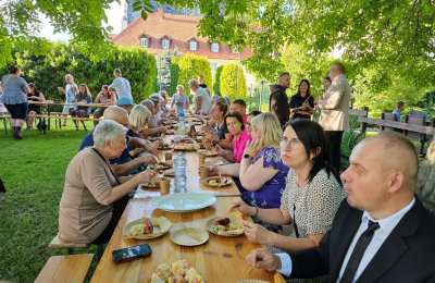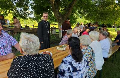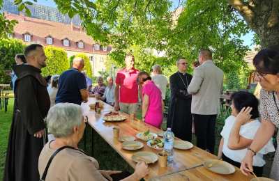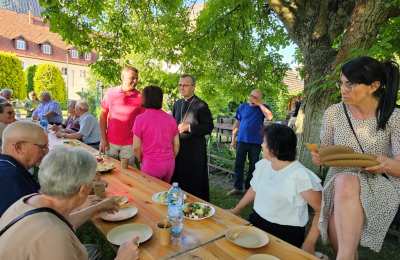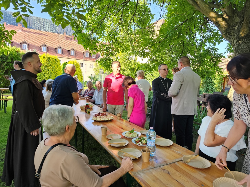 Po Mszy św. proboszcz o. Masseo Senczek OFM zaprosił ks. biskupa, franciszkanów i wszystkich wiernych do ogrodów klasztornych na poczęstunek.