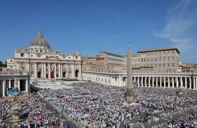 W ten oto sposób w niedzielę, 7 września przed godziną ósmą wraz z księdzem Mateuszem, z którym niegdyś rozpoczynaliśmy parafialną ścieżkę z Carlem Acutisem, jesteśmy na Placu Świętego Piotra w sektorze przeznaczonym dla księży, który powoli się wypełnia. Kapłani pochodzący oczywiście z całego świata (ponad 300 kardynałów i biskupów, 1700 księży), mamy wrażenie że stosunkowo niewielu z Polski. W każdym razie atmosfera jest z tych najlepszych, wielkich wydarzeń na Placu Świętego Piotra, kiedy czuje się, że nadzieja jest prawdziwa i wibruje wręcz w powietrzu. Myślę, że bardzo potrzebujemy takich chwil i świadomości, że również nasze czasy obfitują w autentycznych świętych. Na kilka minut przed rozpoczęciem Eucharystii papież Leon XIV w białej sutannie wychodzi przed ołtarz, aby wszystkich serdecznie przywitać. Zaczyna od słowa Buongiorno, w czym przypomina swojego poprzednika, ale biorąc pod uwagę zasługi papieża Franciszka dla dzisiejszej kanonizacji, można to przyjąć z uśmiechem.