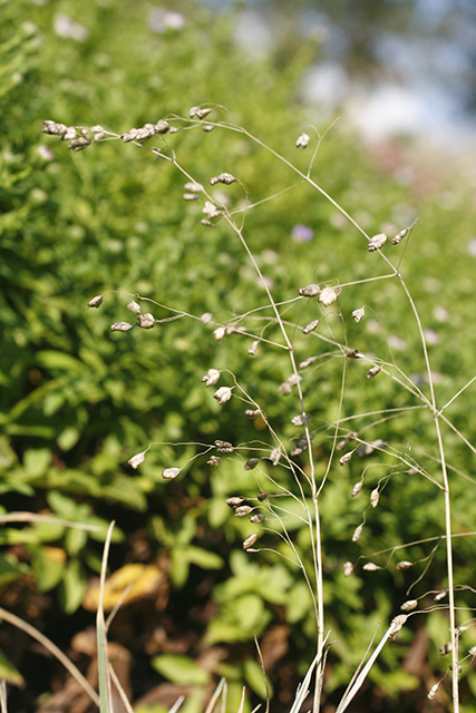 Roślina występuje w kilku odmianach, różniących się barwą kwiatostanów, pokrojem i wysokością. Do popularniejszych należą: Russells (50–60 cm, jasnozielone liście z kremowymi brzegami), Golden Bee (złotożółte kwiatostany), Limouzi (purpurowe kwiatostany, kaskadowy pokrój), Zitterzebra (20–40 cm, jasnozielone liście z kremowymi brzegami) i Tinkerbell (75–100 cm, brązowożółte kwiatostany z purpurowymi refleksami). Wybór odmiany zależy od efektu dekoracyjnego, jaki chcemy uzyskać.