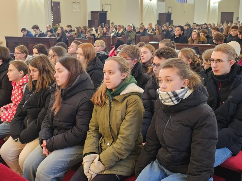 Po Mszy św. w I LO w Jarocinie odbyło się spotkanie z ks. Sebastianem Picurem, duchownym znanym z Tik Toka i innych mediów społecznościowych, gdzie prowadzi ewangelizację. Dla młodzieży przygotowano także poczęstunek.