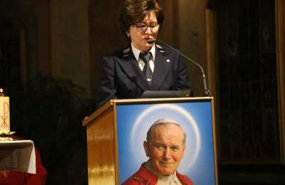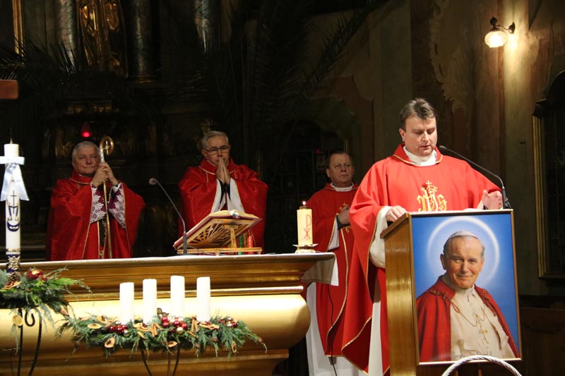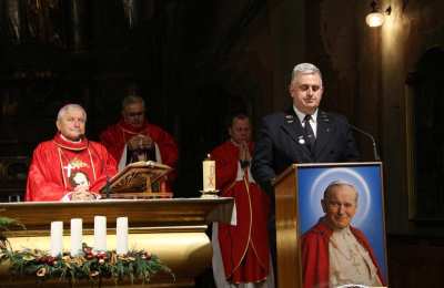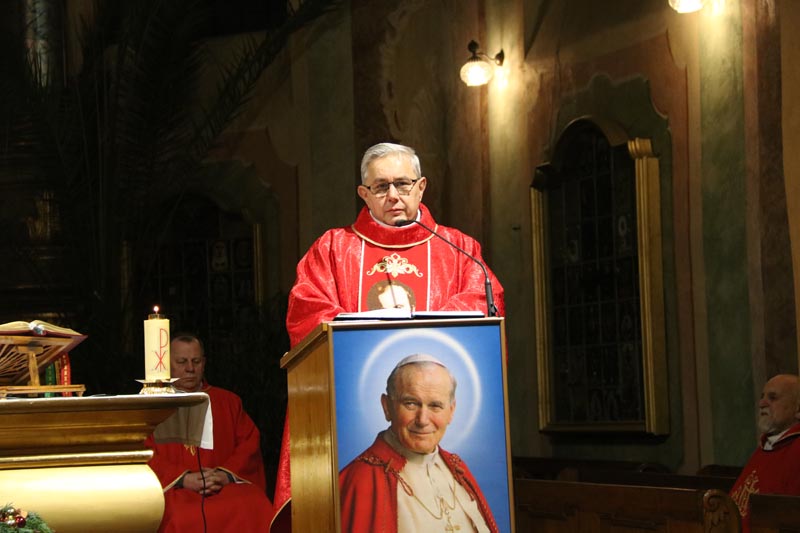 W homilii o. Andrzej Lemiesz przypomniał, że w okresie stanu wojennego w kościele ojców jezuitów w Kaliszu były sprawowane Msze św. za ojczyznę. Wskazywał, że z tamtym okresem wiąże się słowo „Solidarność”. – „Solidarność” zachwyciła świat tym, że gromadziła się wokół Chrystusa, wokół Eucharystii i sakramentów świętych. „Solidarność” zrodziła się na kolanach, pod krzyżem - podkreślał Superior Jezuitów. Ubolewał, że czas wolności stał się czasem odchodzenia od Boga, od moralności. - Musimy trzymać się Chrystusa. Pod krzyżem jest nasze miejsce, tam jest miejsce naszej modlitwy. Bez tej walki nic nie osiągniemy, będziemy przegrywać wszystko, a najgorsze jest to, że będziemy przegrywać wieczność – stwierdził Kaznodzieja. Zaznaczył, że „Solidarność” to dziś wielkie wyzwanie dla człowieka. – To wezwanie dla całej ojczyzny, byśmy w końcu powstali jako ludzie, którzy są z Chrystusem na dobre i na złe, którzy są z Jego Matką Maryją. Chcemy, aby Maryja nas ciągle prowadziła do Chrystusa, ciągle nam wskazywała „zróbcie wszystko cokolwiek Syn mój wam powie”, czyli pilnujcie dekalogu, pilnujcie przykazań, strzeżcie tego, co jest depozytem naszej wiary, żebyśmy nie przegrali na wieki. Bóg chce, żeby Polska była katolicka, żeby Polska była wierna Panu Bogu – przekonywał Duchowny.