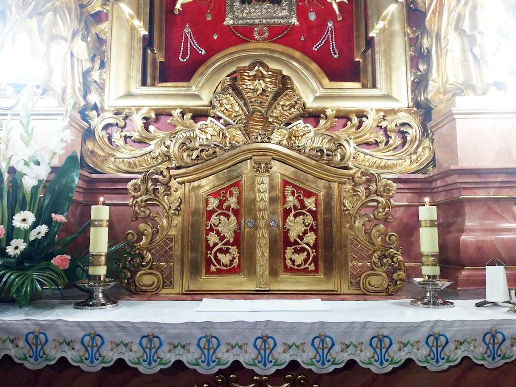 Tabernakulum oznacza po łacinie namiot. Jest to oczywiście nawiązanie do biblijnego namiotu spotkania Boga z narodem wybranym. Ale namiot to też po prostu miejsce schronienia przed deszczem, wiatrem i chłodem, to miejsce, które nawet wśród wielu ludzi zapewnia nam intymność i możliwość bycia z kimś sam na sam. Tym samym jest tabernakulum w naszym kościele. To miejsce spotkania Boga z narodem wybranym, czyli z nami.