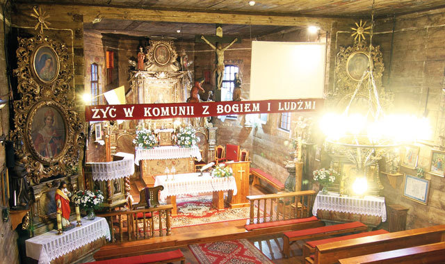 Pierwotny kościół, który podobno istniał tutaj już w XI wieku, rozpadł się ze starości. Nosił on wezwanie św. Wojciecha, do którego później dodano także św. Marię Magdalenę. Obecnie istniejąca świątynia nie ma starożytnej metryki, powstała bowiem w połowie XVII wieku, jednak na tle innych podobnych obiektów z tej epoki zachwyca przede wszystkim dobrze zachowanym wnętrzem. Miejsce to nie było oszczędzone przez los. Wielkie spustoszenie spowodowała epidemia cholery, jak odnotowują stare źródła: „(...) przed rokiem 1655 siedziało tu 9 kmieci, z których na początku XVIII wieku ani jednego nie było, role po nich wcielono do folwarku. W roku 1711 wymarła połowa mieszkańców na powietrze morowe”. W 1850 roku piorun zniszczył wieżę kościelną, tylko cudem nie spłonęła cała konstrukcja. W zaledwie dwa lata później straty zostały naprawione. Dzisiejsza świątynia Oczyszczenia Najświętszej Maryi Panny od czasu powstania zachowała się właściwie bez większych zmian. Jest oczywiście kilka nowszych elementów, takich jak wspomniana wieża oraz dach. Jako ciekawostkę powiem, iż świątynia zamiast gontu kryta jest... eternitem! Oczywiście nie takim, jaki znamy z dachów typowych wsi lat 70. XX wieku, ten pochodzi bowiem z 1927 roku. Zamontowano go podczas gruntownego remontu i tak właściwie zostało do czasów obecnych.