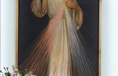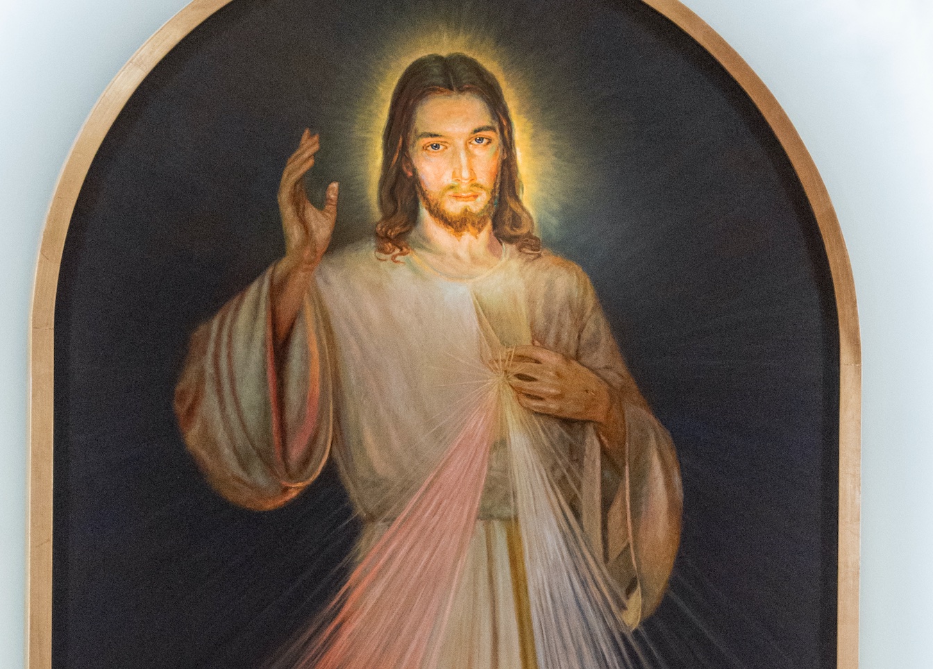 Istotne jest to, że Jezus Miłosierny z tego obrazu chce cię obdarzać miłosierdziem w sakramencie pokuty, ilekroć z ufnością wyznasz Mu swoje grzechy, o czym mówi promień blady, woda, sakrament chrztu i pokuty. On chce cię umacniać i karmić sobą w Eucharystii, to promień czerwony, krew na tym obrazie. Krew i woda, to znaczenie tych promieni, o których Jezus powiedział: „Szczęśliwy kto w ich cieniu żyć będzie, bo nie dosięgnie go sprawiedliwa ręka Boga” (Dz. 299). A więc nie pieniądze, nie dobra opinia, nawet nie zdrowie da ci prawdziwe szczęście, ale życie sakramentami świętymi, życie w relacji z Bogiem, życie ufnością. Z relacji międzyludzkich, wiesz jak ważne jest spojrzenie, ile ono wyraża. A Jezus mówi o swoim spojrzeniu z tego obrazu: „Moje spojrzenie z tego obrazu, jest jako spojrzenie z krzyża” (Dz. 326), tak więc Jezus na każdego patrzy z wielką troską i miłością. Niezależnie od tego w jakim momencie życia jesteś, czy oddaliłeś się od Niego przytłoczony ciężarem trosk i własnej słabości, lub masz doświadczenie tego, że ci błogosławi. Dlatego nie sposób nie dostrzec tych miłosiernych oczu Jezusa, które ogarniają każdego swoim spojrzeniem. On patrzy na ciebie miłosiernie, rozumie cię najlepiej ze wszystkich. Jezus patrzy z miłością i chce, abyś był miłosierny wobec innych, abyś dostrzegał Jego obraz w sobie, w drugim człowieku i przychodził mu z pomocą, jeśli będzie taka potrzeba. Przez Siostrę Faustynę podaje trzy sposoby czynienia miłosierdzia: czyn, słowo i modlitwa (por. Dz. 742).