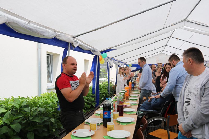 Nad niepełnosprawnymi opiekę sprawowali wolontariusze. – Nie wyobrażam sobie wakacji bez wczasorekolekcji wspólnoty Ostoja. Co roku poświęcam swój urlop, aby tutaj być. Towarzyszą mi moje dzieci, które angażują się w pomaganie osobom niepełnosprawnym. Chcę podziękować ludziom, bez których wsparcia ten wypoczynek nie byłby możliwy. Są firmy, które sponsorują nam różne rzeczy, np. lodówkę, pralkę. Poza tym wierni z parafii diecezji kaliskiej wsparli nas finansowo. Tym wszystkim ludziom dobrej woli należą się słowa wielkiego podziękowania – zaznaczyła Aneta Kaleta. Od samego początku pani Anecie towarzyszy córka, która w tym roku zajmuje się swoją podopieczną. – Istnieje fantastyczna relacja między niepełnosprawnymi a wolontariuszami. Podopieczni są bardzo zadowoleni, że poświęcamy im swój czas, że rozmawiamy z nimi. Panuje tutaj bardzo rodzinna atmosfera – stwierdziła Katarzyna Kaleta.