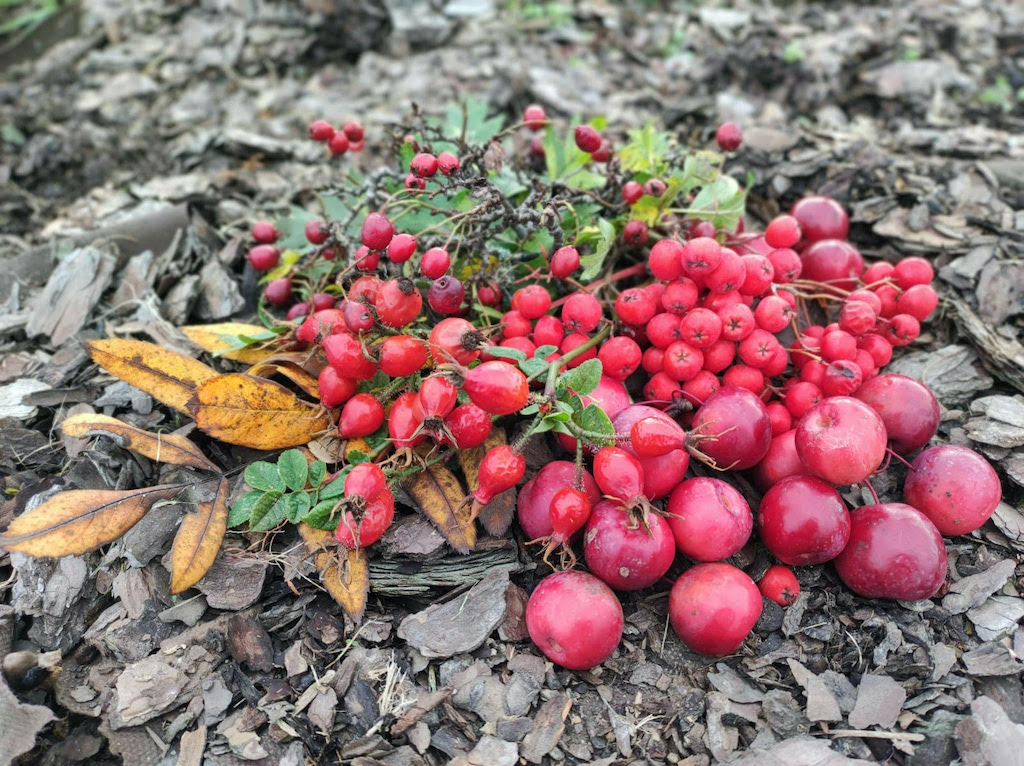 Czerwone owoce głogu symbolizowały ochronę życia, sił witalnych i domowego ogniska. Jego gałązki wieszano nad drzwiami, by odgonić choroby i złe moce. Dzika róża (Rosa canina), zwana „różą świętych” lub „jabłuszkiem świętych”, symbolizowała zdrowie i błogosławieństwo. Jej owoce suszono na zimę, przygotowując z nich herbaty i napary lecznicze, które miały chronić domowników. Z kolei małe, czerwone lub purpurowe jabłuszka (Malus spp.), dojrzewające w październiku i listopadzie, nazywano „rajskimi” lub „ognistymi jabłuszkami”. Wieszano je w domach, by chroniły przed chorobami i złymi duchami, a w dniu Wszystkich Świętych zdobiono nimi groby. Dzieci otrzymywały je od dziadków „na pamiątkę świętych”, jako znak błogosławieństwa i miłości rodzinnej. Cechą wspólną wszystkich tych owoców było jaskrawe, czerwone zabarwienie, które symbolizowało życie, ciepło i ochronę w czasie ciemności oraz przejścia między światem żywych, a światem zmarłych.