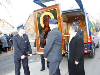 – Wczoraj bardzo przeżyliśmy powitanie obrazu, bo to Matka Boża nas nawiedziła. Na uroczystości byliśmy obecni całą rodziną. Dzisiaj niosę obraz do poświęcenia, potem będziemy się przed nim modlić w domu – mówiła jedna z parafianek. Wraz z proboszczem