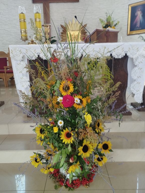 W uroczystość Wniebowzięcia Najświętszej Maryi Panny cała świątynia św. Wawrzyńca w Wielowsi pachniała kwiatami, ziołami, zbożami i owocami tegorocznego, upalnego lata. Szczególną ozdobą był Parafialny Święty Bukiet, który zdobił stół Pański. Spleciono go na kanwie polnych słoneczników, obfitujących w tłuste nasiona. Całą przestrzeń bukietu wypełniały zioła: mięta i melisa, rumianki, gałązki śliwy i jabłoni z owocami, lipa, pachnące Boże drzewko, nawłoć oraz róże – symbol piękna Matki Bożej. Wieńczyły go okazałe kłosy zbóż i kwitnące trawy. U podstawy zaś rozpościerały się, wygrzane w słońcu, czerwone korale jarzębiny.
