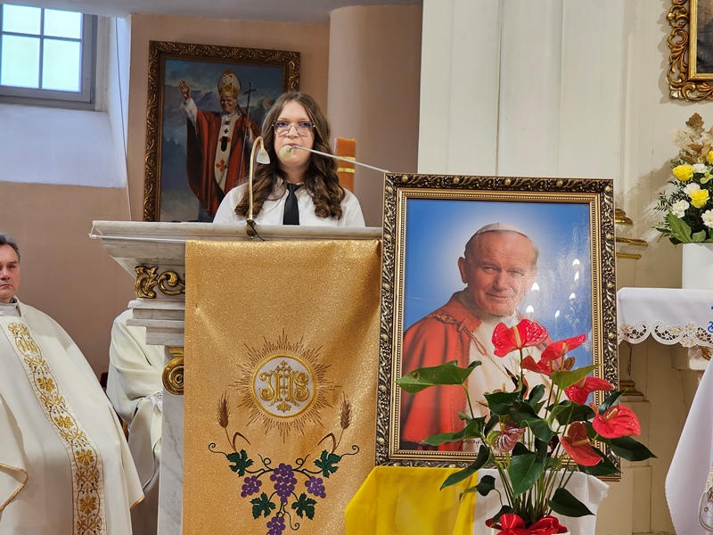 Po Mszy św. odbył się koncert w wykonaniu uczniów Zespołu Szkół Ponadpodstawowych nr 3 w Krotoszynie pod kierunkiem nauczycielki Natalii Szymańskiej. O realizowaniu w szkole dziedzictwa św. Jana Pawła II - mówiła dyrektor placówki Izabela Kossakowska.