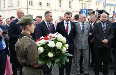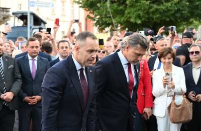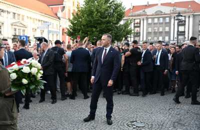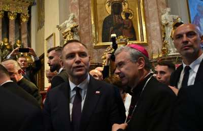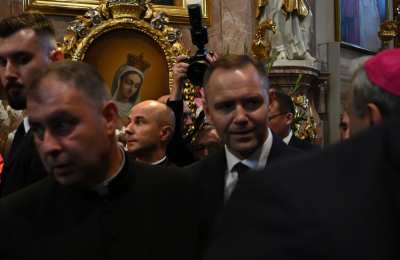 Po Mszy św. przed cudownym wizerunkiem Świętej Rodziny modlił się prezydent Rzeczpospolitej dr Karol Nawrocki. Na pamiątkę wizyty, która odbyła się w pierwszym dniu jego prezydentury, Karol Nawrocki otrzymał wizerunek św. Józefa Kaliskiego. Wcześniej złożył on kwiaty pod pomnikiem św. Jana Pawła II.