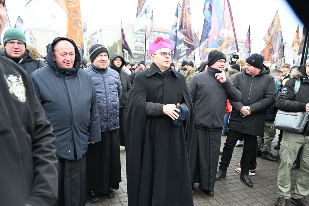 Wojownicy Maryi z Polski i Europy na terenie naszej diecezji po raz pierwszy spotkali się w 2018 r. u ojców pasjonistów w Sadowiu. Tegoroczne spotkanie formacyjne w Ostrowie rozpoczęło się modlitwą różańcową. - Cieszymy się niezmiernie, że jesteście dzisiaj u nas. To wielka radość dla nas. Możemy razem świętować, spotykać się, modlić i świadczyć o Jezusie oraz uczyć się dobrego i pięknego życia. Życzę każdemu z was, żeby to był ważny czas pięknych spotkań z braćmi, ale także z Chrystusem, naszym Panem i z Jego Matką. Bardzo was proszę bracia o świadectwo. Bardzo potrzebujemy dzisiaj mocnego, klarownego świadectwa bliskości Jezusa, wierności Jezusowi i Jego Ewangelii. Dzisiaj Ostrowianie bardzo na to świadectwo czekają – mówił ks. bp Damian Bryl przed rozpoczęciem modlitwy. Procesja wyruszyła z Sanktuarium Miłosierdzia Bożego do hali 3MK Arena, gdzie centralnym punktem spotkania była Msza św. pod przewodnictwem księdza biskupa.