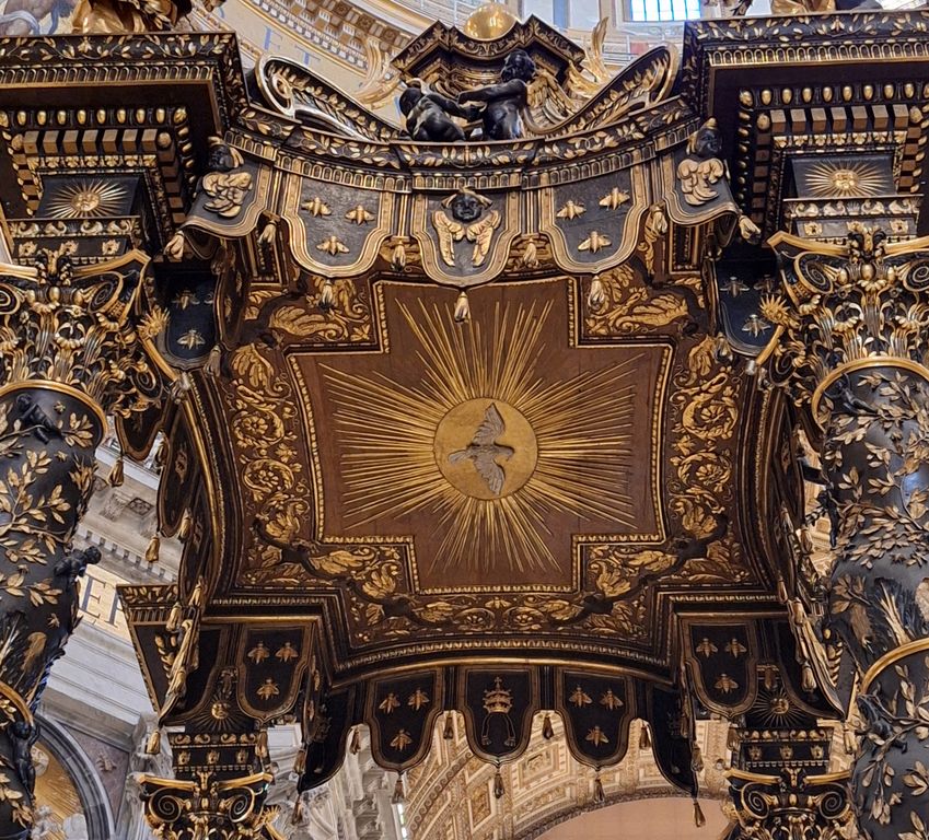 Kilka lat temu odkryłem, że pszczoły czekają na mnie również w Rzymie. Jeżdżę tam jako pielgrzym, do grobów apostolskich, do miejsc ważnych dla historii Kościoła. Z czasem zacząłem jednak zauważać tam jeszcze jeden ślad. Pszczoły. Nie żywe, lecz wyrzeźbione, wykute, odlane. Obecne na fasadach, bramach, fontannach i w herbach. Prowadzą do papieża Urbana VIII, Maffea Barberiniego. W herbie jego rodu znajdowały się trzy pszczoły. Z czasem stały się one jednym z najbardziej rozpoznawalnych znaków jego pontyfikatu. Najmocniej widać to w Bazylice św. Piotra. Kiedy człowiek staje pod monumentalnym baldachimem Berniniego, najpierw widzi rozmach całej konstrukcji. Dopiero po chwili zaczyna dostrzegać szczegóły. Wśród ozdób i ornamentów pojawiają się pszczoły. Niewielkie wobec ogromu bazyliki, ale wyraźne. Potem zaczyna się je zauważać także gdzie indziej, na fontannie Trytona przy Piazza Barberini, na bramach, na pałacach, w różnych detalach miasta. Ilekroć chodzę po Rzymie, obok wielkich zabytków wypatruję właśnie tych małych znaków. To ciekawe doświadczenie, bo człowiek uświadamia sobie wtedy, że pszczoły potrafią być obecne zarówno w przydomowym sadzie, jak i w samym sercu chrześcijaństwa. W ulu i w bazylice. W przyrodzie i w sztuce. W codzienności i w historii Kościoła.