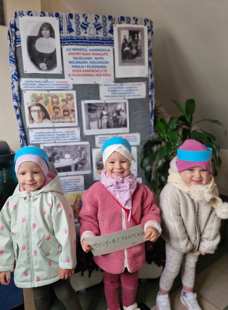 W związku z kanonizacją dzieci z Przedszkola Sióstr Salezjanek w Grabowie nad Prosną cały miniony tydzień w formie zabaw, pogadanek, prac plastycznych i gry terenowej, realizując projekt s. Moniki Kanafy FMA, poznawały trudy pracy misyjnej oraz koleje życia s. Marii Troncatti, włoskiej salezjanki, która znaczną część swojego życia poświęciła pracy misyjnej w Ekwadorze.