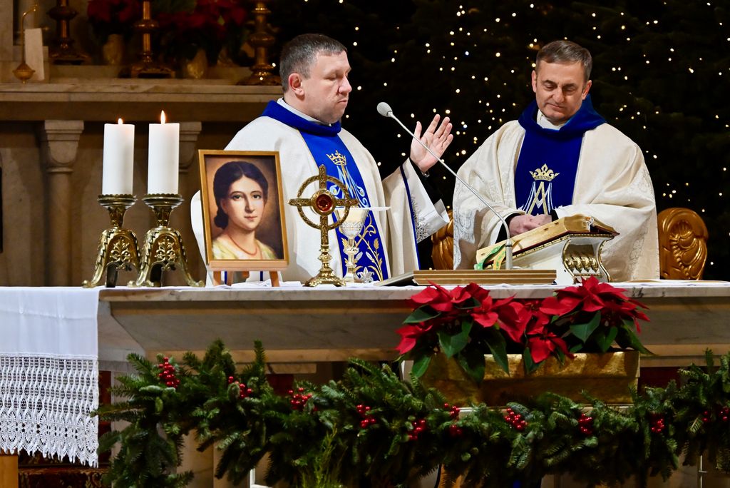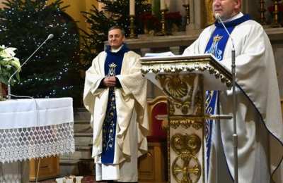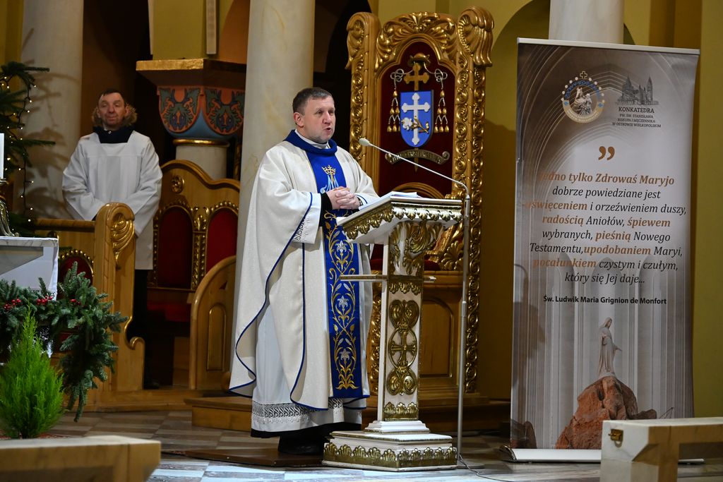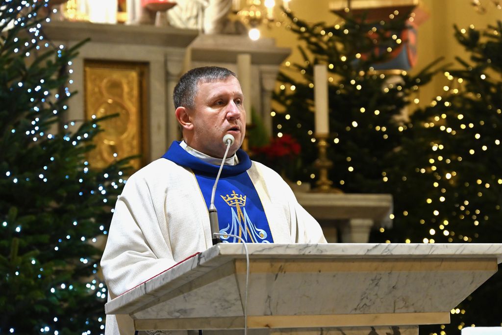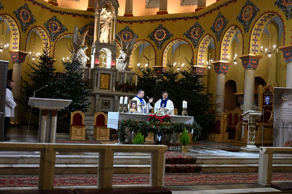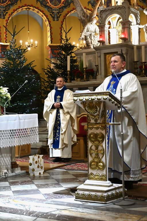 Mszę św. koncelebrowali ks. kanonik Bogumił Kempa, diecezjalny duszpasterz wspólnot różańcowych i oficjał Sądu Biskupiego w Kaliszu oraz ks. kanonik Adam Kosmała, proboszcz konkatedry. - Dziękując Bogu za wszystko, a pewnie każdy z was dzisiaj mógłby tu stanąć i podziękować, prośmy, by Jezus nam błogosławił na nowy 2026 Jubileuszowy Rok, żeby był przy nas, dodawał nam sił, zabierał zniechęcenia, załamania, podtrzymywał w tym co trudne. Prosimy też o to Maryję, ona wszystko zachowywała w swoim sercu, jak słyszeliśmy. Jej serce jest bardzo pojemne, tam się wszystko zmieści. Tam każdy z nas się zmieści. Mówicie codziennie: Maryjo ukryj mnie codziennie w swoim niepokalanym sercu. Ileż tam jest miłości - podkreślił w homilii ks. Kempa.