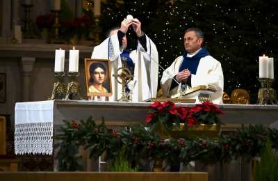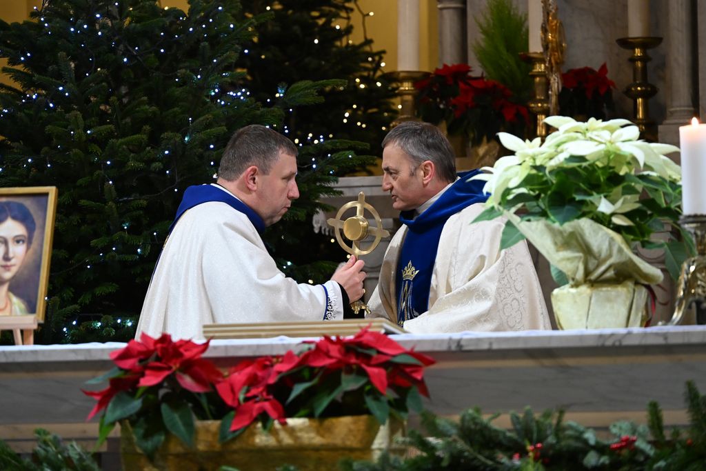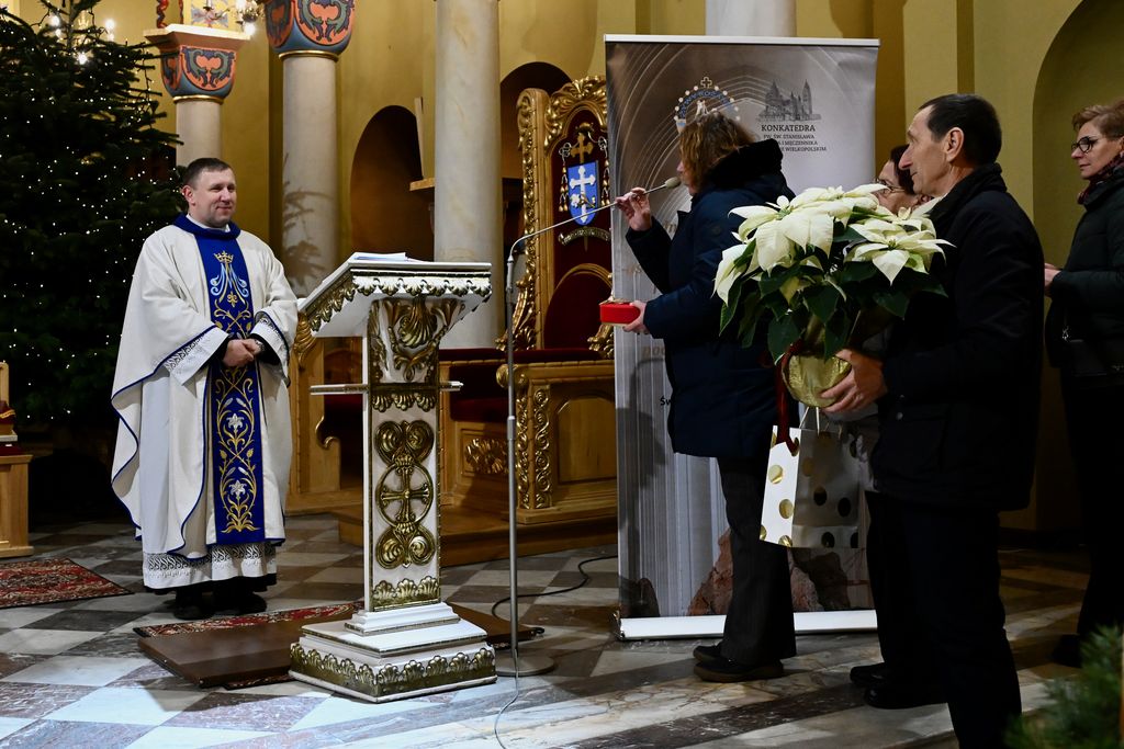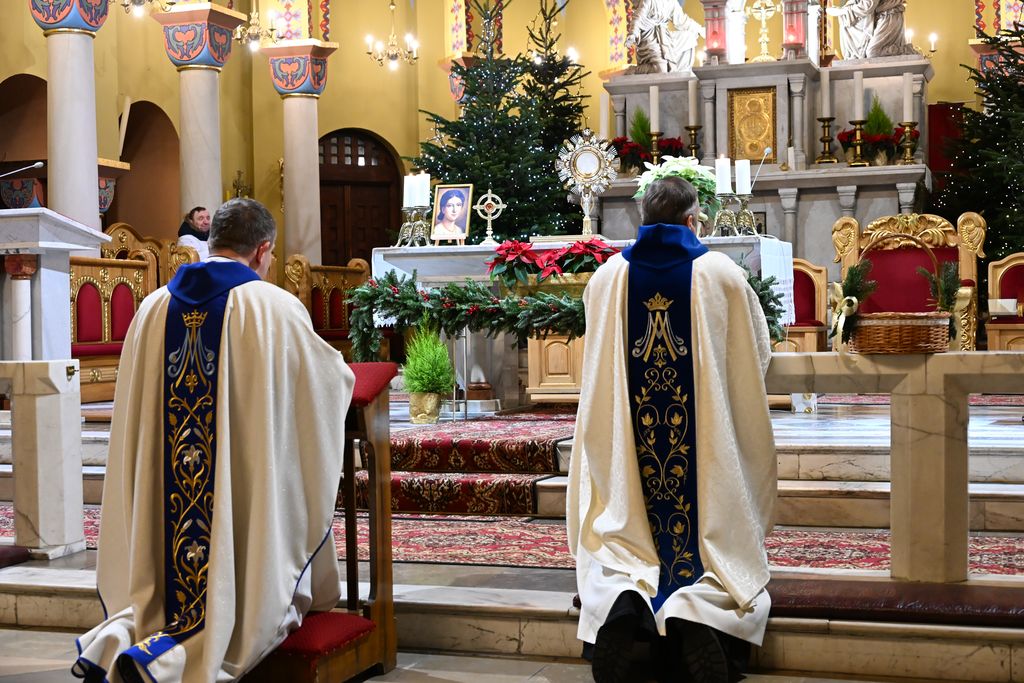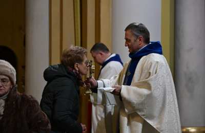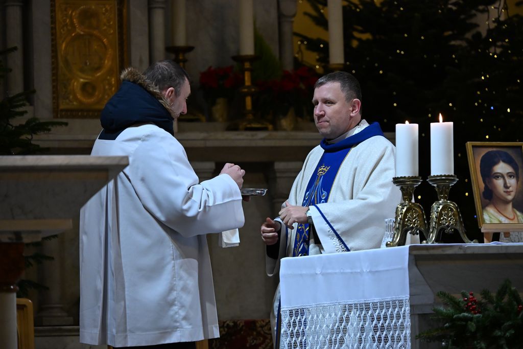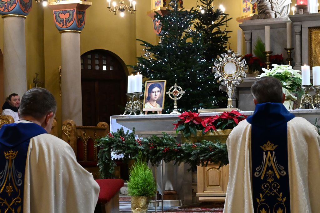 Mszę św. koncelebrowali ks. kanonik Bogumił Kempa, diecezjalny duszpasterz wspólnot różańcowych i oficjał Sądu Biskupiego w Kaliszu oraz ks. kanonik Adam Kosmała, proboszcz konkatedry. - Dziękując Bogu za wszystko, a pewnie każdy z was dzisiaj mógłby tu stanąć i podziękować, prośmy, by Jezus nam błogosławił na nowy 2026 Jubileuszowy Rok, żeby był przy nas, dodawał nam sił, zabierał zniechęcenia, załamania, podtrzymywał w tym co trudne. Prosimy też o to Maryję, ona wszystko zachowywała w swoim sercu, jak słyszeliśmy. Jej serce jest bardzo pojemne, tam się wszystko zmieści. Tam każdy z nas się zmieści. Mówicie codziennie: Maryjo ukryj mnie codziennie w swoim niepokalanym sercu. Ileż tam jest miłości - podkreślił w homilii ks. Kempa.