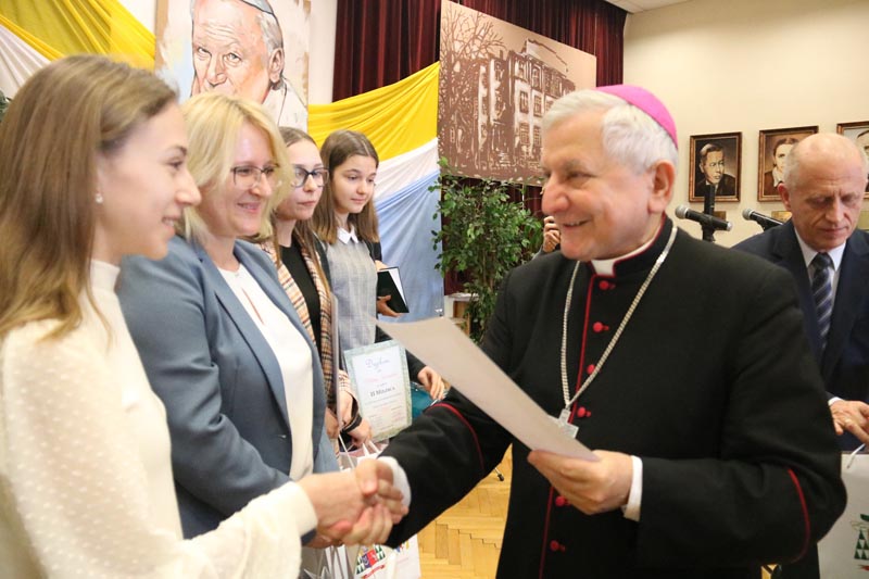 Gala konkursu odbyła się 6 grudnia w I LO w Ostrzeszowie. Jednym z głównych celów konkursu, którego pomysłodawcą jest nazaretanka s. Wiesława Hyzińska, była popularyzacja twórczości Karola Wojtyły wśród młodzieży. W kategorii uczniów klas VI-VIII szkół podstawowych jurorzy przyznali wyróżnienia, które otrzymali: Jan Gabryś z SP nr 2 w Ostrzeszowie, Oliwia Krystek z SP im. Jana Brzechwy w Lutogniewie, Kacper Lis z SP nr 1 w Ostrzeszowie, Cezary Maryniak z SP w Rozdrażewie, Hanna Nowak z SP im. Jana Pawła II w Twardogórze, Zofia Tomalak z Zespołu Szkolno-Przedszkolnego w Kościelnej Wsi, Oliwia Wosiek z SP w Sobiesękach. Wyróżnienia specjalne odebrali: Zofia Łuczak z PSP im. Twórców Ludowych w Kuczkowie, Dawid Sztukowski z SP w Parczewie, Maja Nieruchalska z SP w Biskupicach Zabarycznych. Pierwsze miejsce zajęła Kamila Bilska z SP w Twardogórze, drugie – Milena Jarzumbek, a trzecie - Maja Tokarska, obie z SP w Międzyborzu. Nagrodę specjalną odebrał Nikodem Gawełek z SP w Brzezinach. W kategorii uczniów szkół ponadpodstawowych wyróżnienia otrzymali: Martyna Kalinowska z Zespołu Szkół Ponadpodstawowych nr 1 w Kępnie, Maria Kordas z II LO im. Tadeusza Kościuszki w Kaliszu, Elwira Piaskowska z Publicznego LO Sióstr Salezjanek w Ostrowie Wielkopolskim, Faustyna Skrobańska z I LO im. Marii Skłodowskiej-Curie w Ostrzeszowie, Kamila Żychlińska z Zespołu Szkół Ekonomicznych w Ostrowie Wielkopolskim. Pierwsze miejsce zdobyła Patrycja Balcerzak z I LO im. Marii Skłodowskiej-Curie w Ostrzeszowie, drugie – Julia Wiśniewska z I LO im. Marii Skłodowskiej-Curie w Ostrzeszowie, a trzecie - Aleksandra Noculak z ZS nr 2 im. Przyjaźni Polsko-Norweskiej w Ostrzeszowie. Nagrodę specjalną otrzymał Jakub Oszenda z Ostrowa Wielkopolskiego.