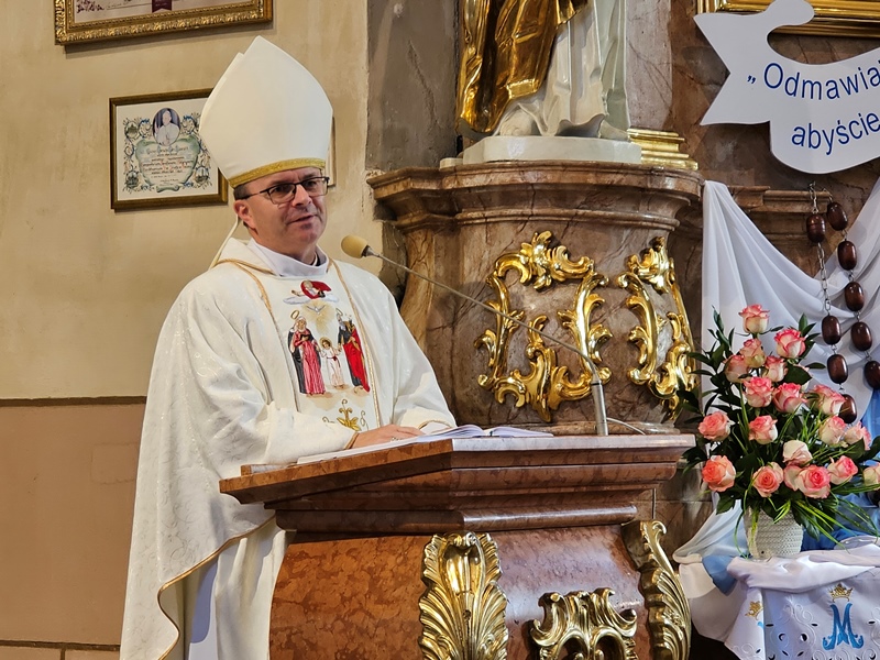 Przed Mszą św. siostry wykonały Akatyst ku czci św. Józefa. W homilii celebrans zachęcał siostry zakonne i wiernych, aby wołali do Pana za przyczyną św. Józefa. - Nie bójmy się prosić, żeby św. Józef nam pomógł, żeby orędował. Nie udawajmy przed Bogiem wielkich i mocnych, tych, którzy sobie dają radę w życiu. Tutaj można być szczerym. Proszę pozwólmy sobie na szczerość, bez koloryzowania, bez makijażu – mówił kaznodzieja. Dziękował siostrom franciszkankom za świadectwo pięknej troski o innych. - Dziękujemy za to, co robicie na co dzień, za wasze otwarte serce, za waszą posługę w parafiach, ale przede wszystkim w domach pomocy, w domach opieki. Dla Kościoła ważny jest wasz charyzmat – podkreślał bp Bryl.