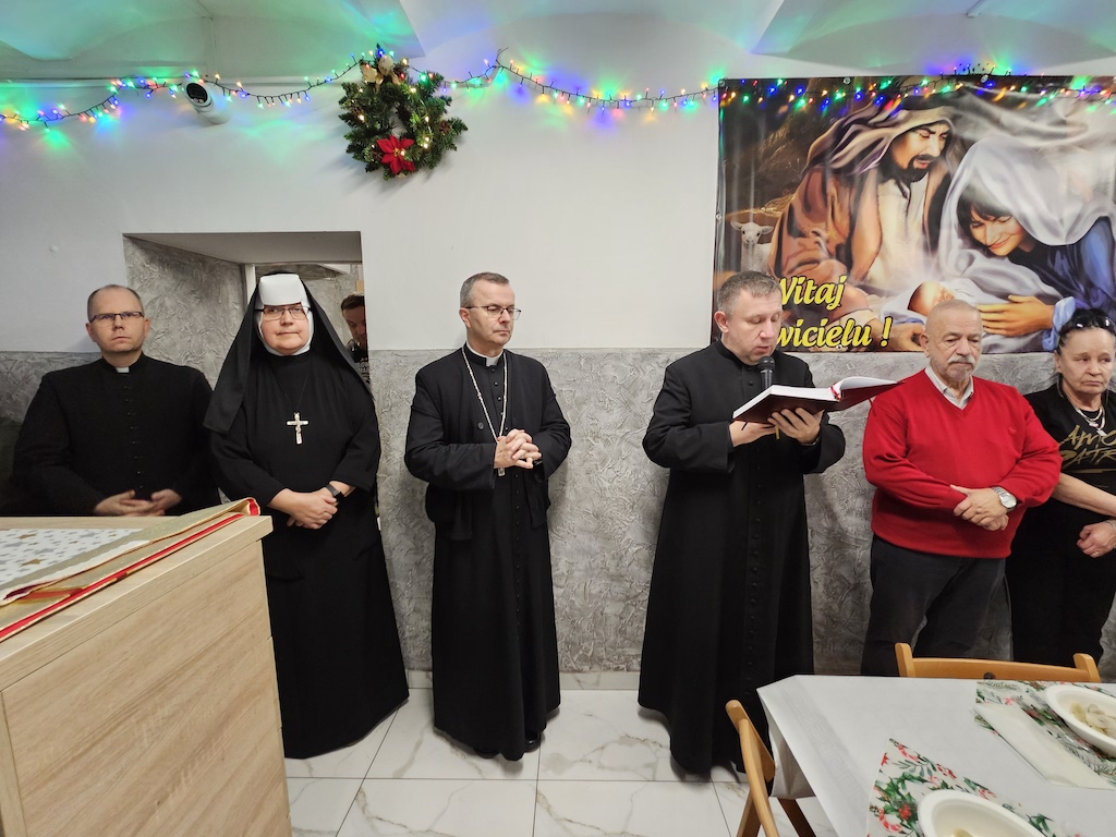 70 osób zasiadło 23 grudnia przy wigilijnym stole w jadłodajni w Ostrowie Wielkopolskim prowadzonej przez Fundację „Głodnych nakarmić”, w której posługują siostry albertynki. Z ubogimi wieczerzę spożył bp Damian Bryl.