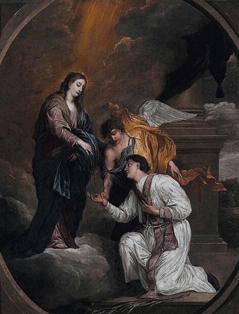 David Teniers, Święty Walenty otrzymujący różaniec z rąk Maryi Dziewicy.