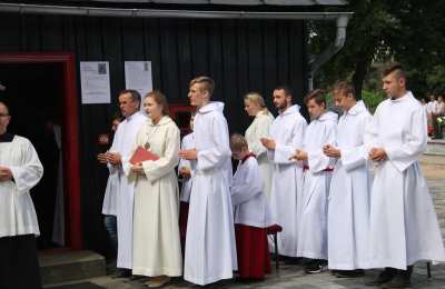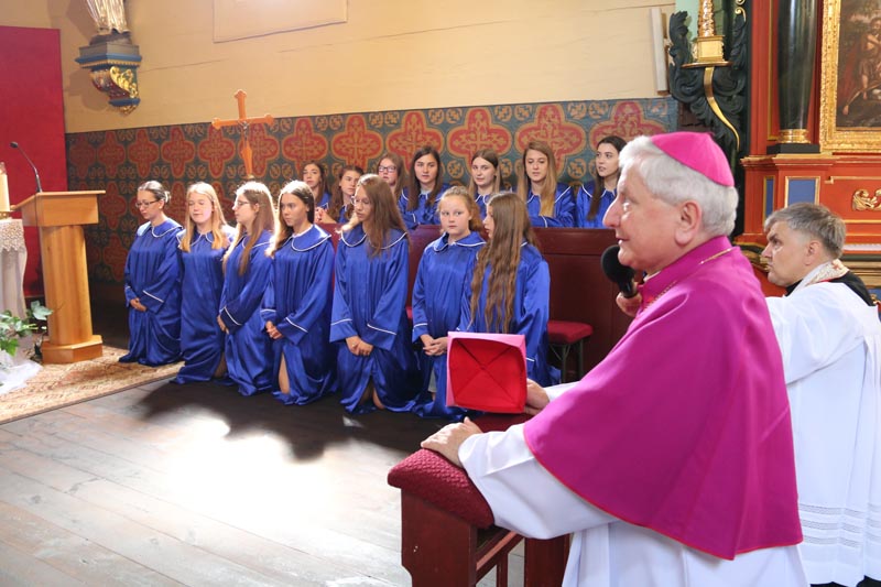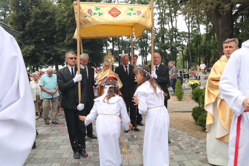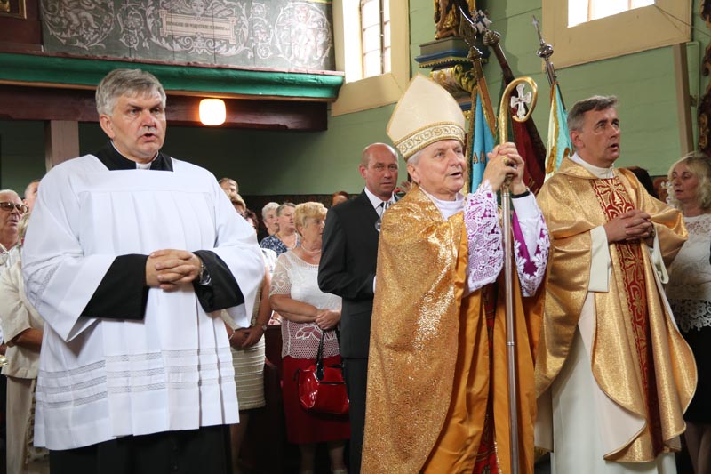 Przed Mszą św. biskup kaliski Edward Janiak poświęcił odrestaurowany ołtarz boczny z obrazami św. Kazimierza Królewicza oraz św. Jana Chrzciciela i św. Wawrzyńca adorującymi Matkę Bożą Wniebowziętą, a także cztery figury św. Stanisława, św. Wojciecha i dwóch aniołów adorujących Najświętszy Sakrament. Kapłanów i wiernych powitał ks. kanonik Karol Galewski.